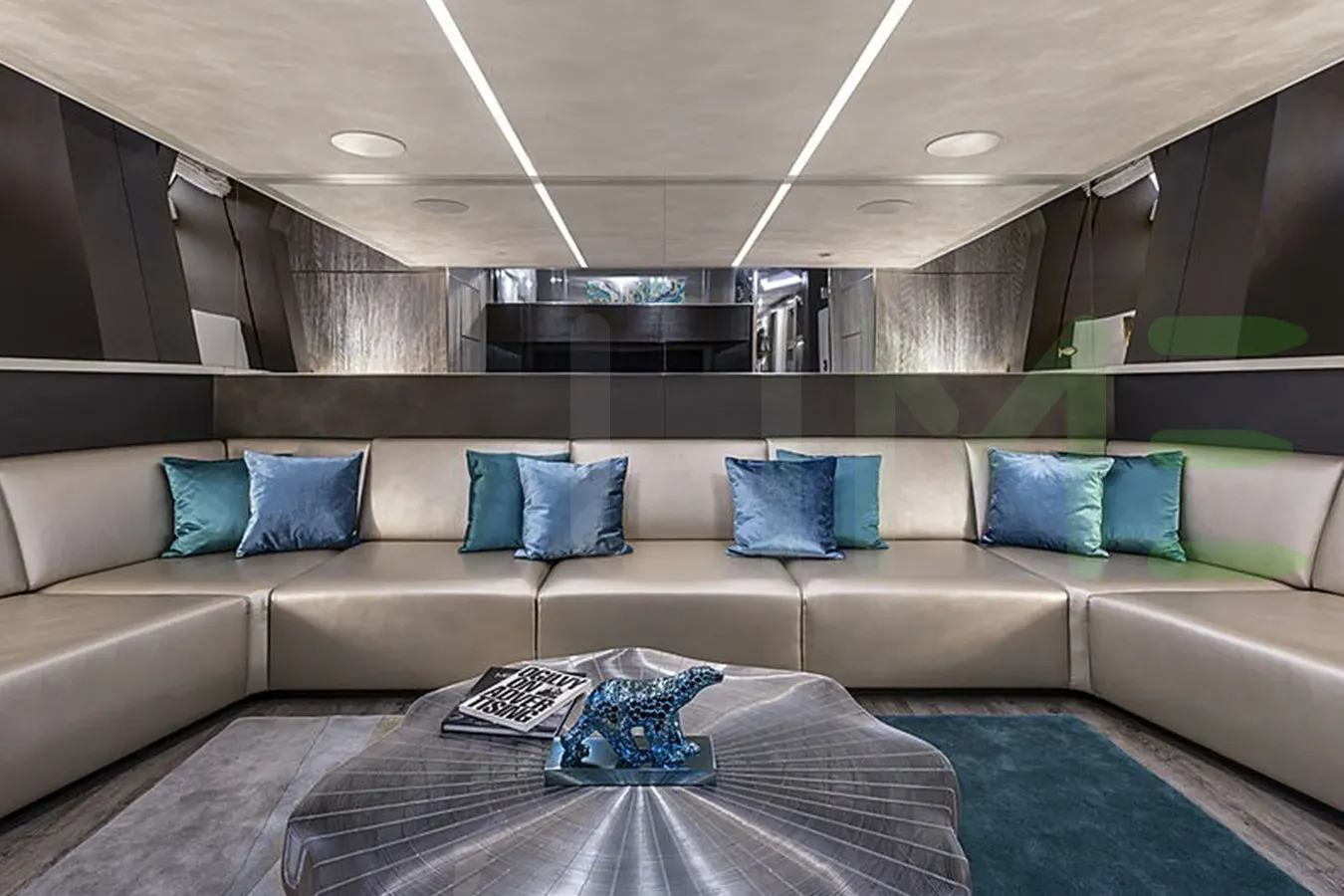 With a gross tonnage of 394, the EL CAZADOR yacht for charter provides ample interior space for enjoyment. EL CAZADOR offers accommodations for up to 8 guests in 4 lavishly appointed staterooms. She can also carry up to 7 crew onboard, including the Captain, to ensure a relaxed luxury yacht charter experience. The interior design by Fulvio De Simoni Yacht Design exudes a sense of luxury, seamlessly blending comfort with style.