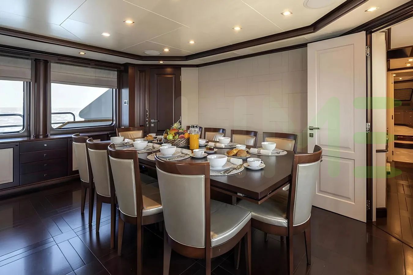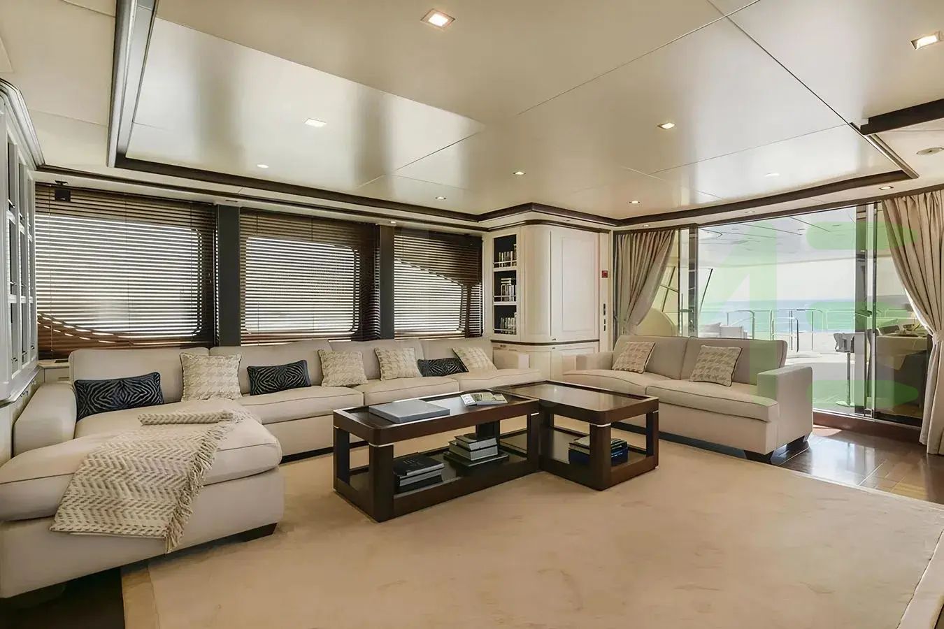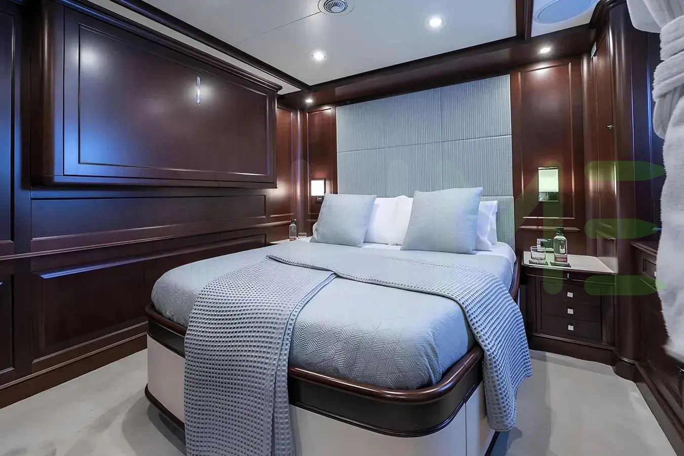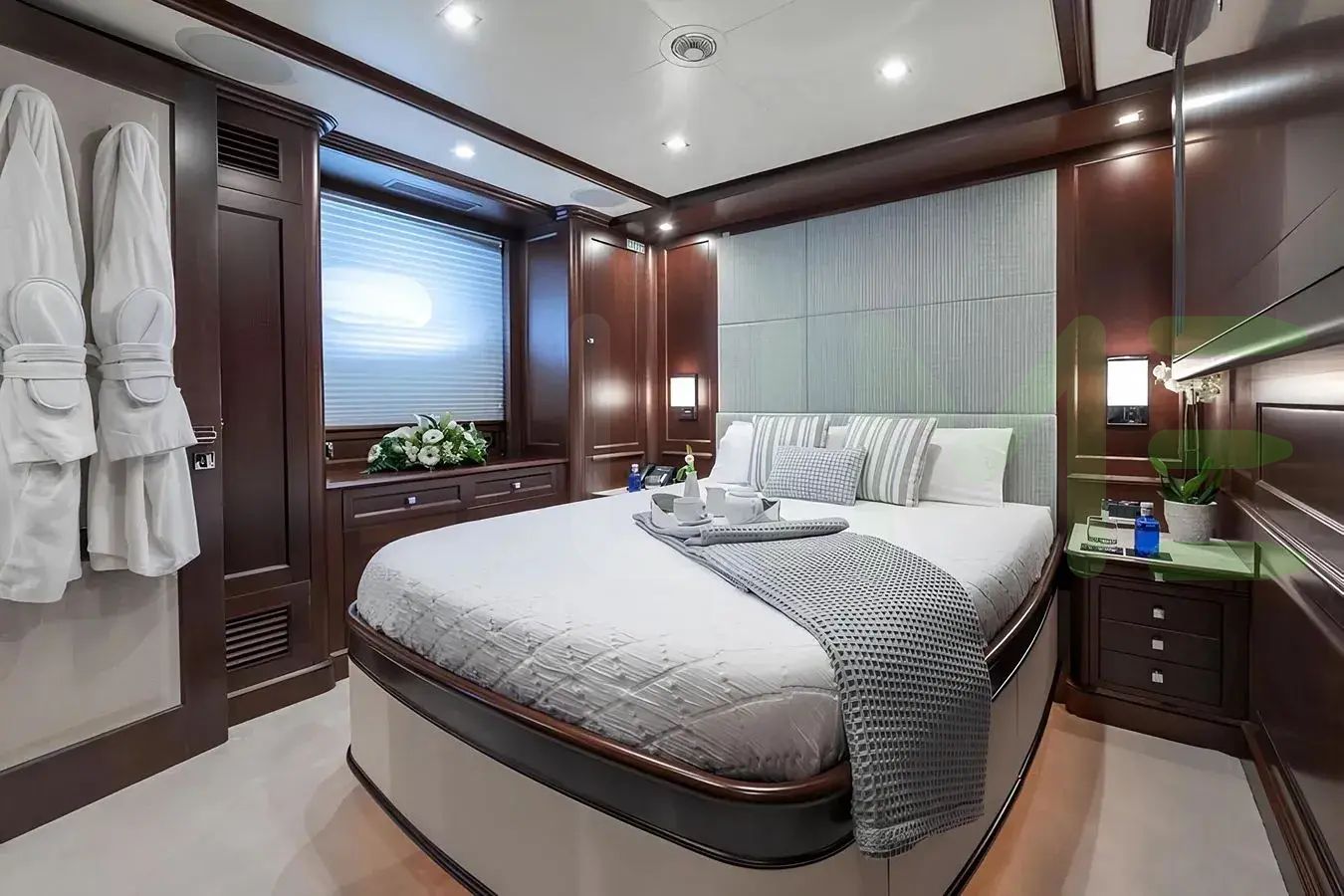 With a gross tonnage of 299, the ELENA NUEVE yacht for charter provides ample interior space for enjoyment. ELENA NUEVE offers accommodations for up to 12 guests in 5 lavishly appointed staterooms. She can also carry up to 7 crew onboard, including the Captain, to ensure a relaxed luxury yacht charter experience. The interior design by Gimena Mazzeo Caneda exudes a sense of luxury, seamlessly blending comfort with style.