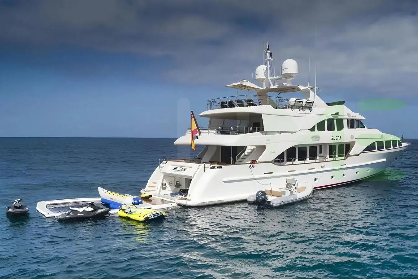Indulge in the opulent comforts of spacious lounges, gourmet dining areas, and elegantly appointed staterooms. Savor the breathtaking views from the open decks, unwind on a sun lounge, or stay active in the water. For adventure enthusiasts, the ELENA NUEVE motoryacht is equipped with an array of water toys. Dive into the crystal-clear waters for a refreshing swim, explore hidden coves, or experience the thrill of wakeboarding. With attentive crew members catering to your every need, a yacht charter promises an unforgettable blend of relaxation, luxury, and adventure.