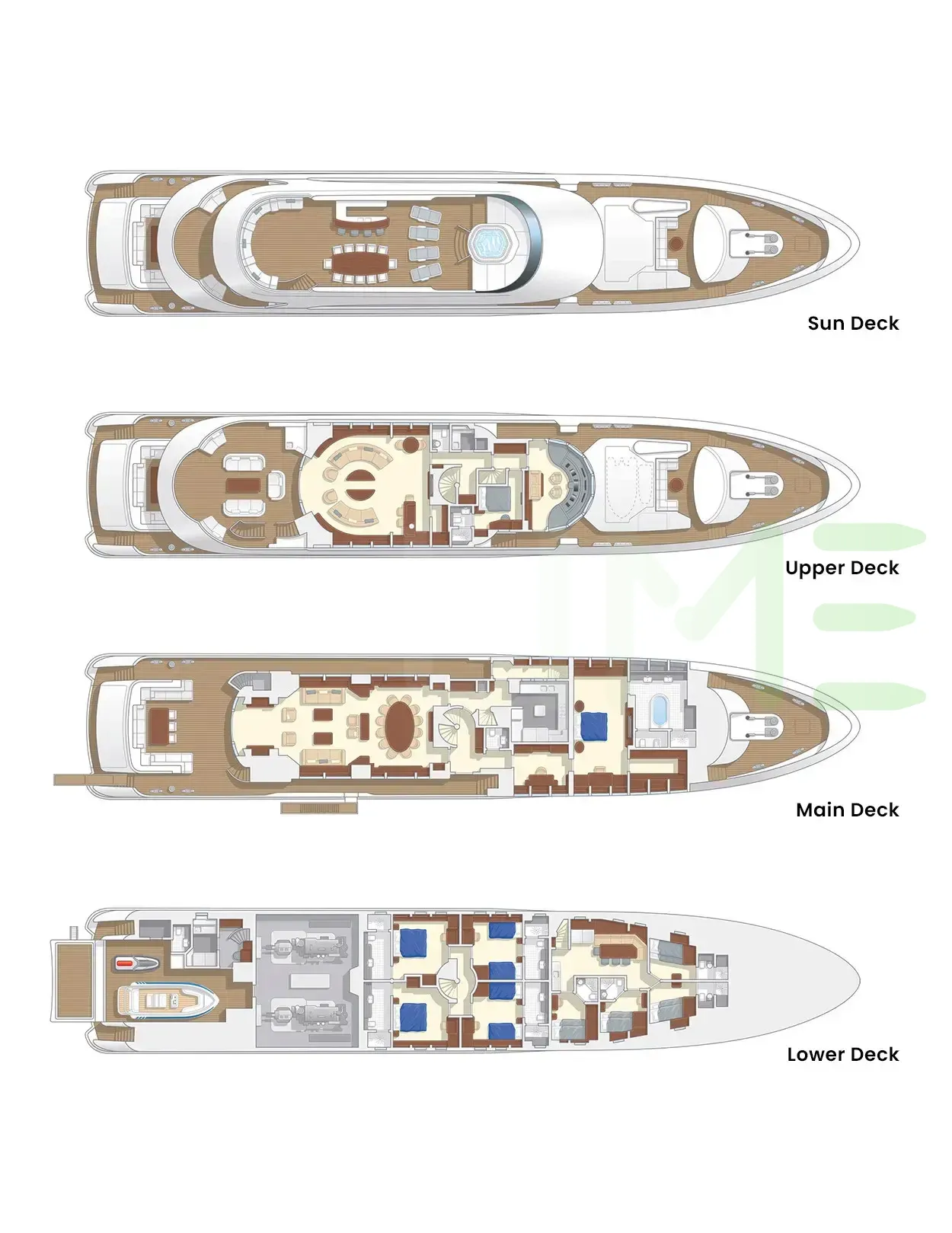 Request plans that include the layout of staterooms, guest areas, and outdoor spaces, as well as crew quarters and work areas.