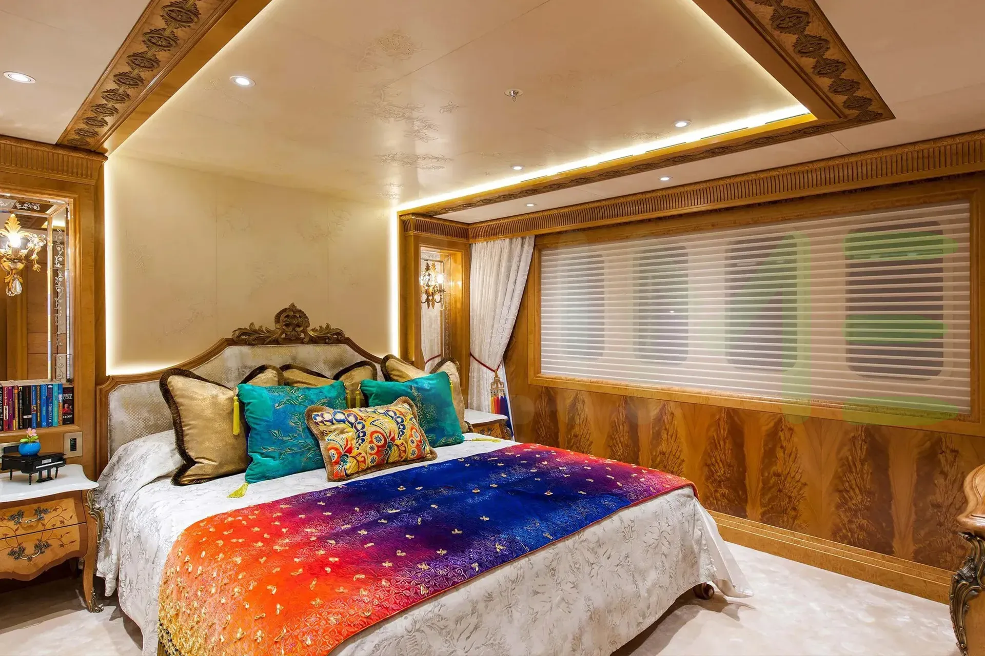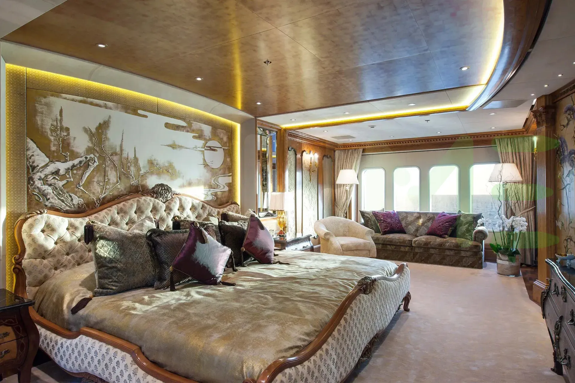 With a gross tonnage of 1,527, the ELYSIAN yacht for charter provides ample interior space for enjoyment. ELYSIAN offers accommodations for up to 12 guests in 6 lavishly appointed staterooms. She can also carry up to 17 crew onboard, including the Captain, to ensure a relaxed luxury yacht charter experience. The interior design by Reymond Langton Design Ltd. exudes a sense of luxury, seamlessly blending comfort with style.