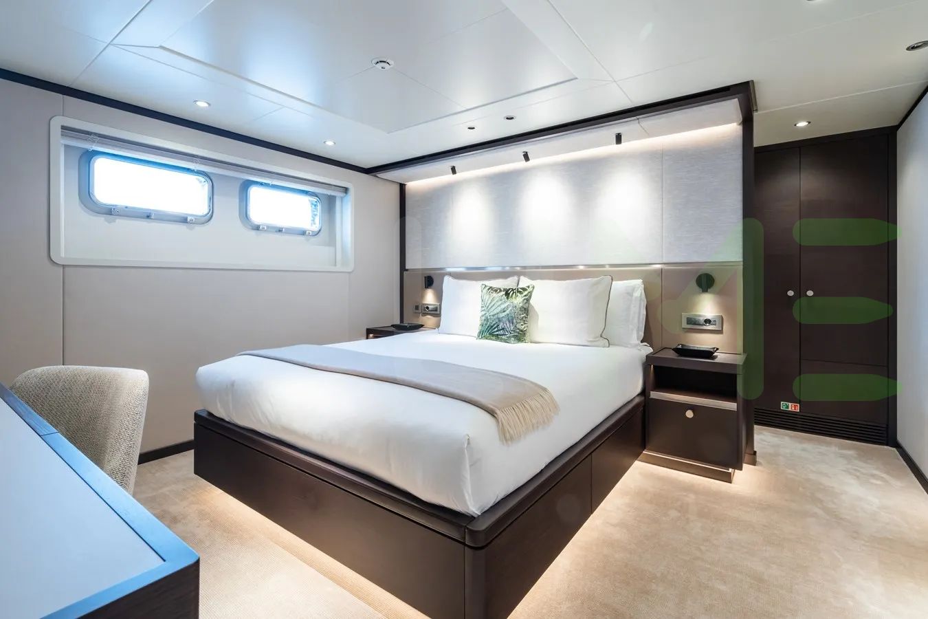 The exterior, designed by De Voogt Naval Architects, captures your attention with beautiful lines and impeccable craftsmanship. Whether you're lounging on the spacious decks or enjoying water sports in a secluded anchorage, the EMERALD yacht for charter, built of Steel and Aluminium, offers a wealth of opportunities for relaxation and adventure.