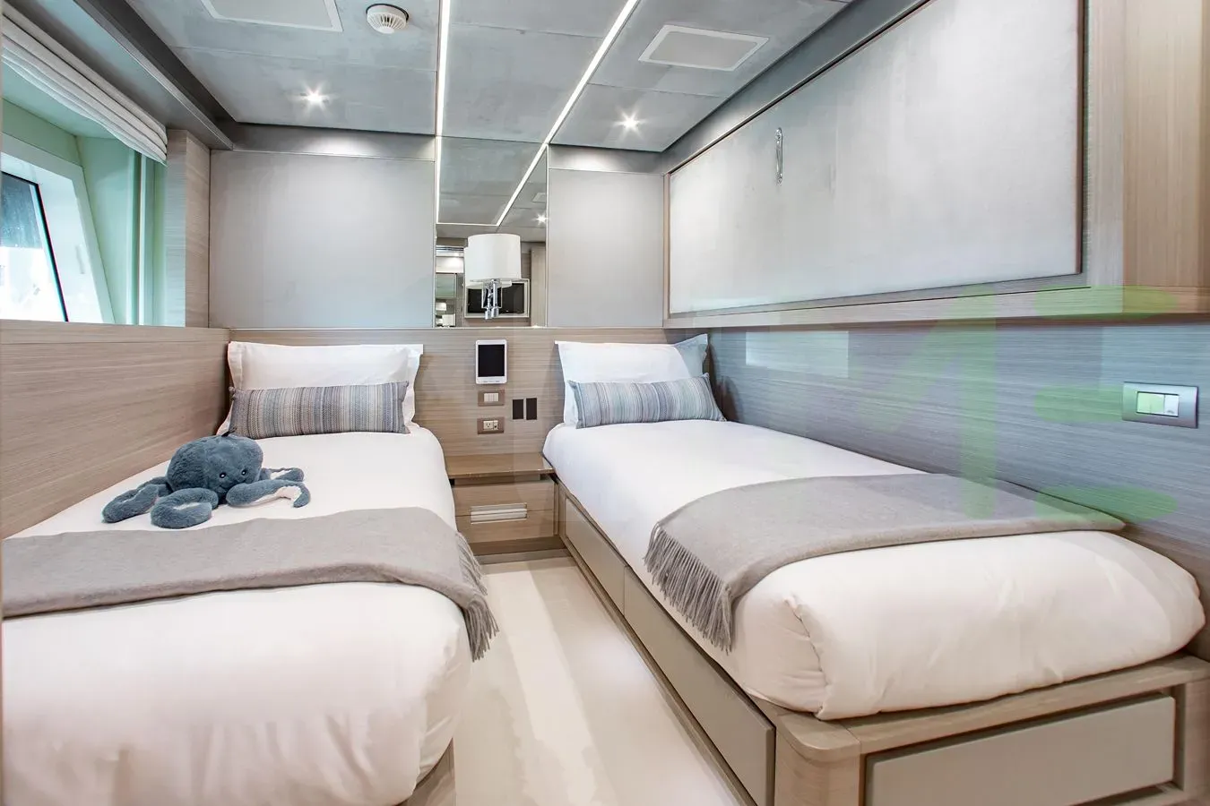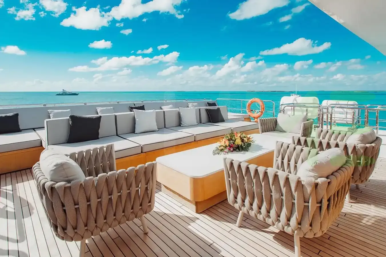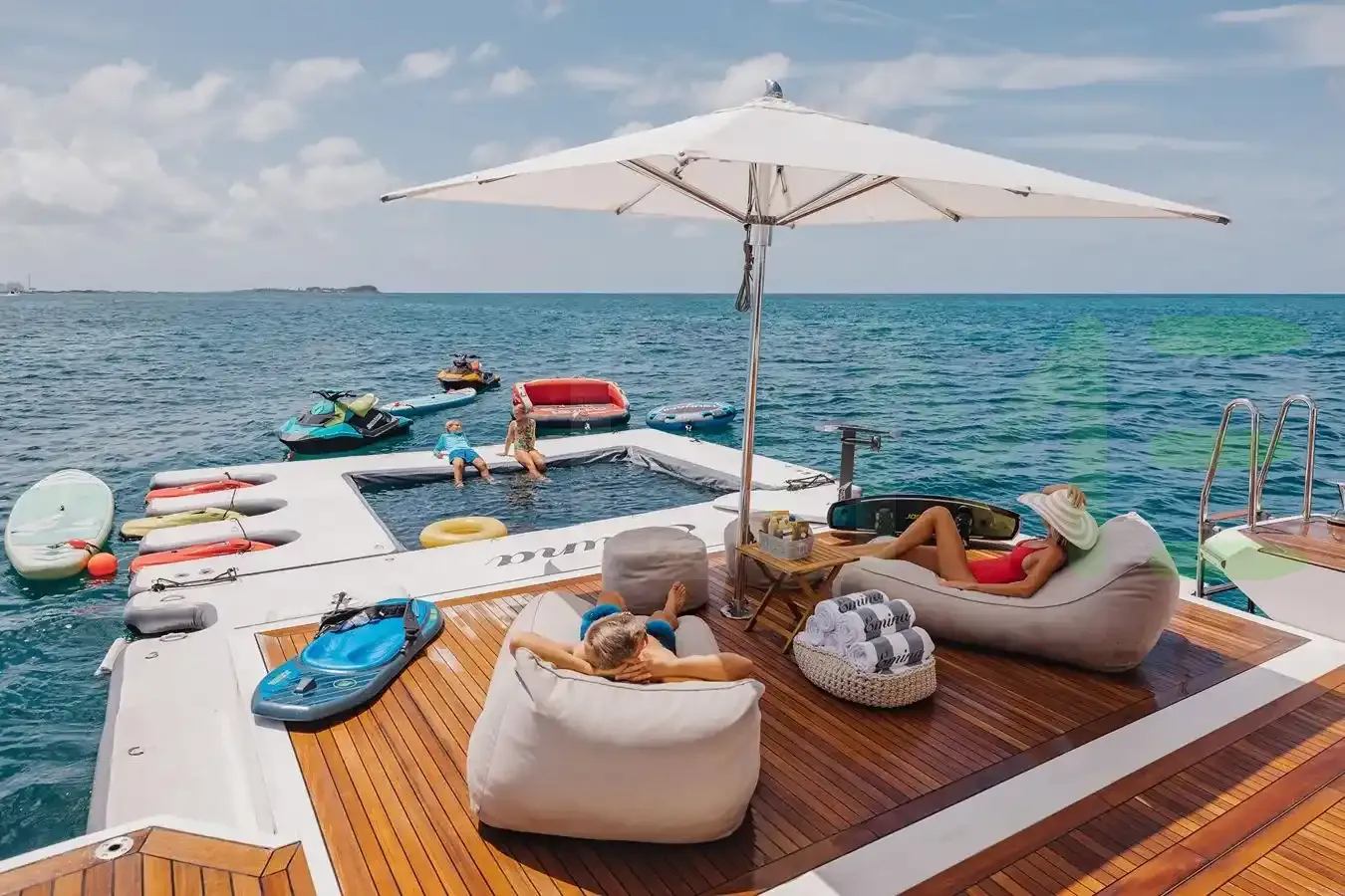 You and your guests can enjoy a variety of experiences on Emina, notably the pool, useful to practice your technique or just cool off. Even the most discerning of charter guests will enjoy the included beach club or a gym with all the latest equipment is available for a good work out. Soak up the bubbles in style in the deck jacuzzi.