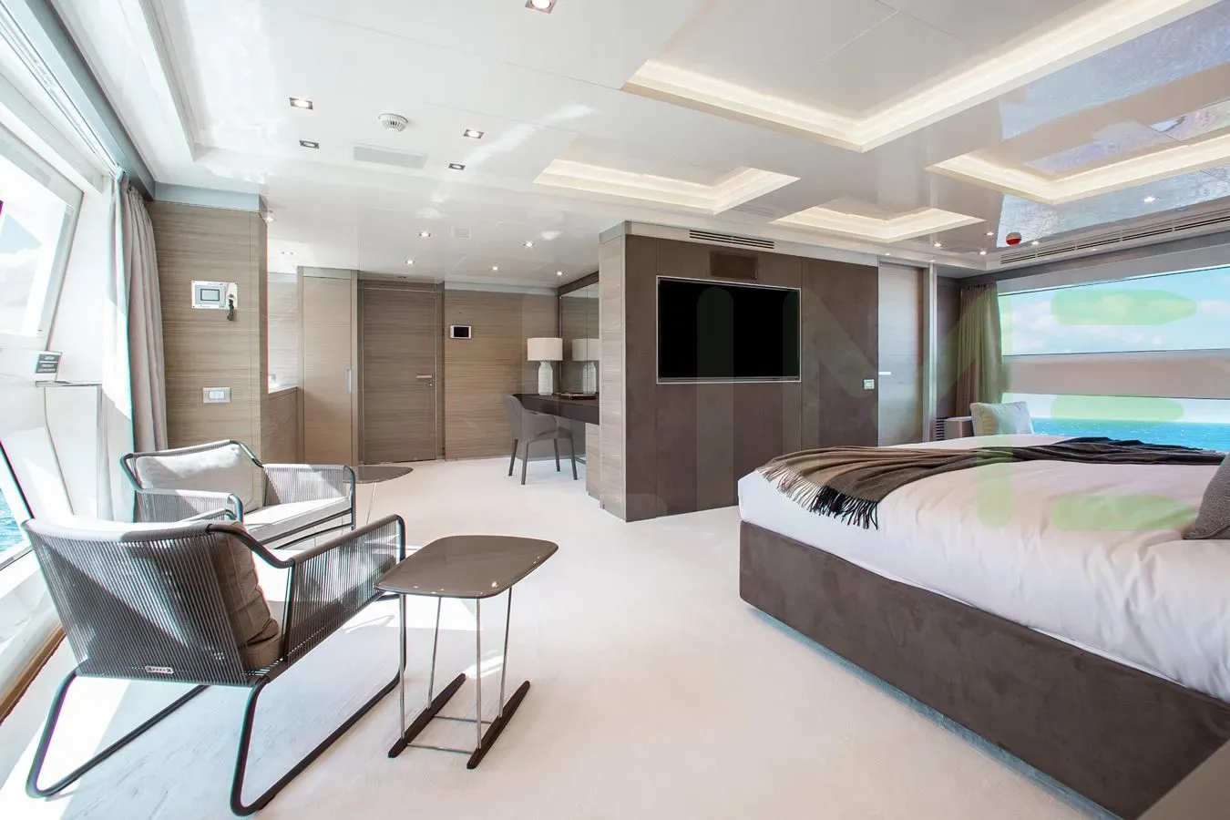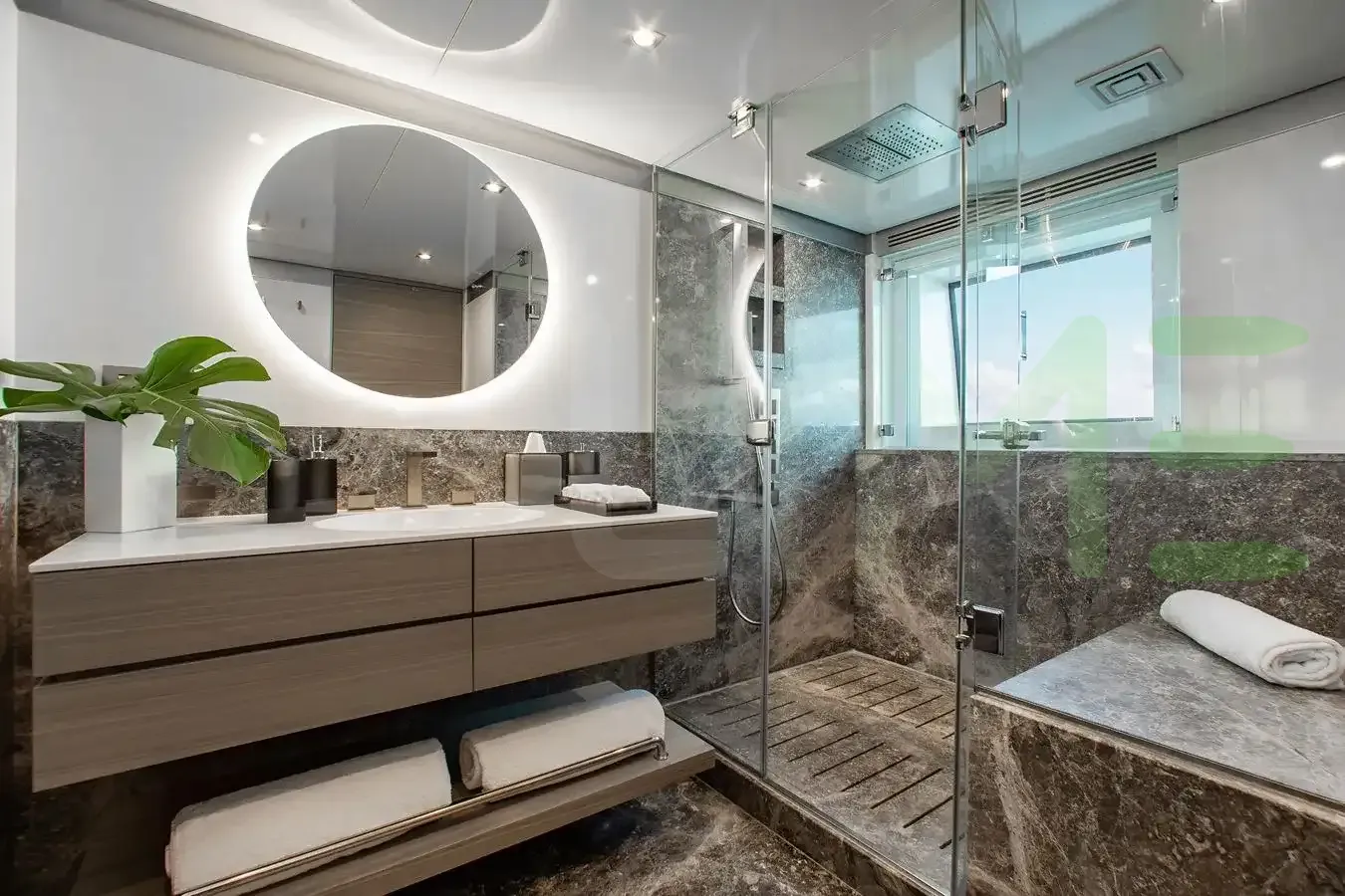 With a gross tonnage of 376, the EMINA yacht for charter provides ample interior space for enjoyment. EMINA offers accommodations for up to 12 guests in 6 lavishly appointed staterooms. She can also carry up to 9 crew onboard, including the Captain, to ensure a relaxed luxury yacht charter experience. The interior design by RWD exudes a sense of luxury, seamlessly blending comfort with style.