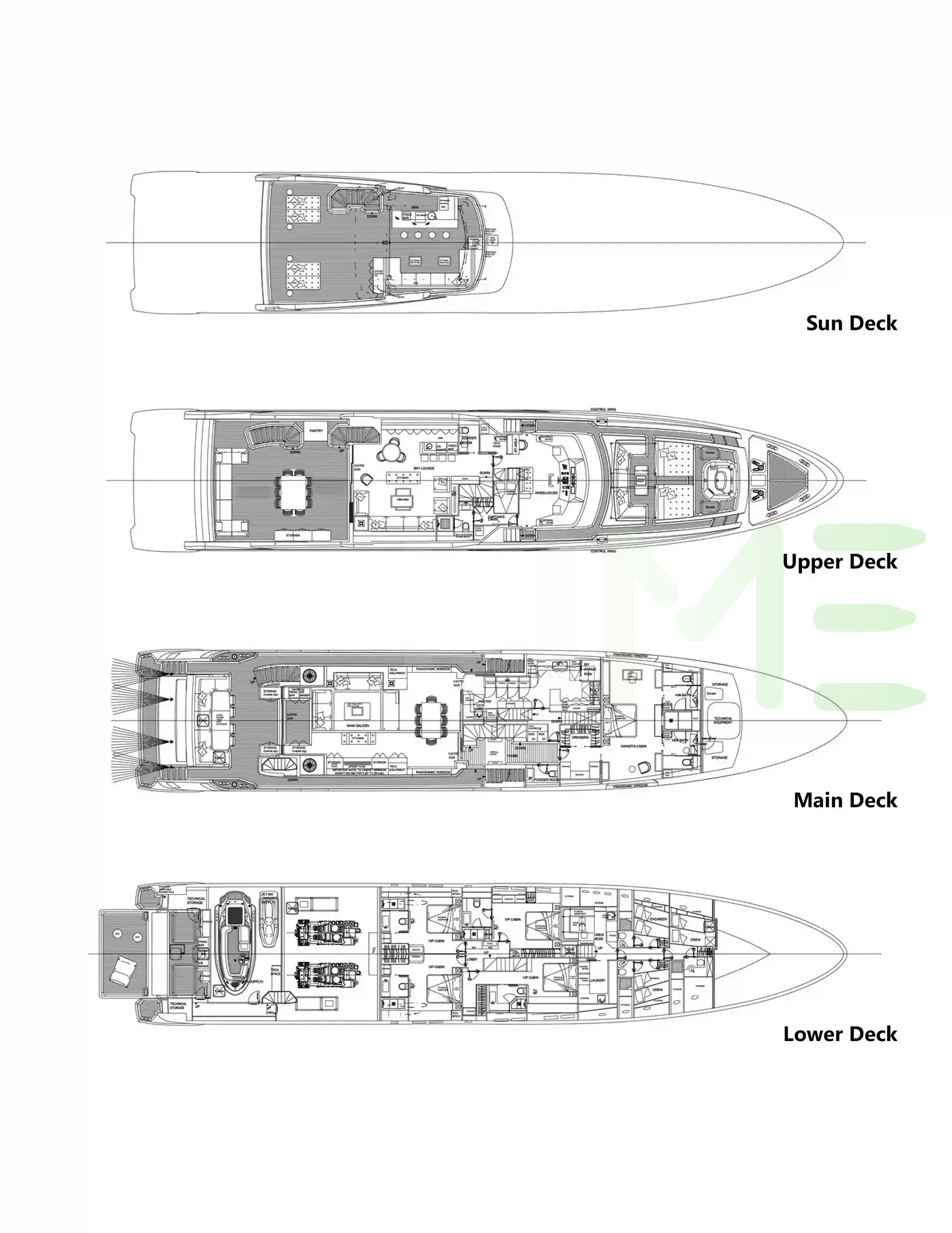 Request plans that include the layout of staterooms, guest areas, and outdoor spaces, as well as crew quarters and work areas.