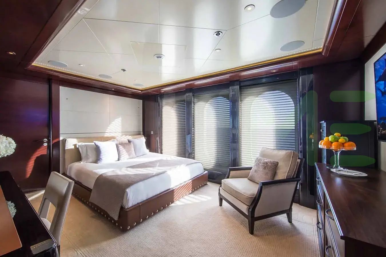 With a gross tonnage of 2,054, the EMINENCE yacht for charter provides ample interior space for enjoyment. EMINENCE offers accommodations for up to 16 guests in 8 lavishly appointed staterooms. She can also carry up to 24 crew onboard, including the Captain, to ensure a relaxed luxury yacht charter experience. The interior design by Reymond Langton Design Ltd. exudes a sense of luxury, seamlessly blending comfort with style.