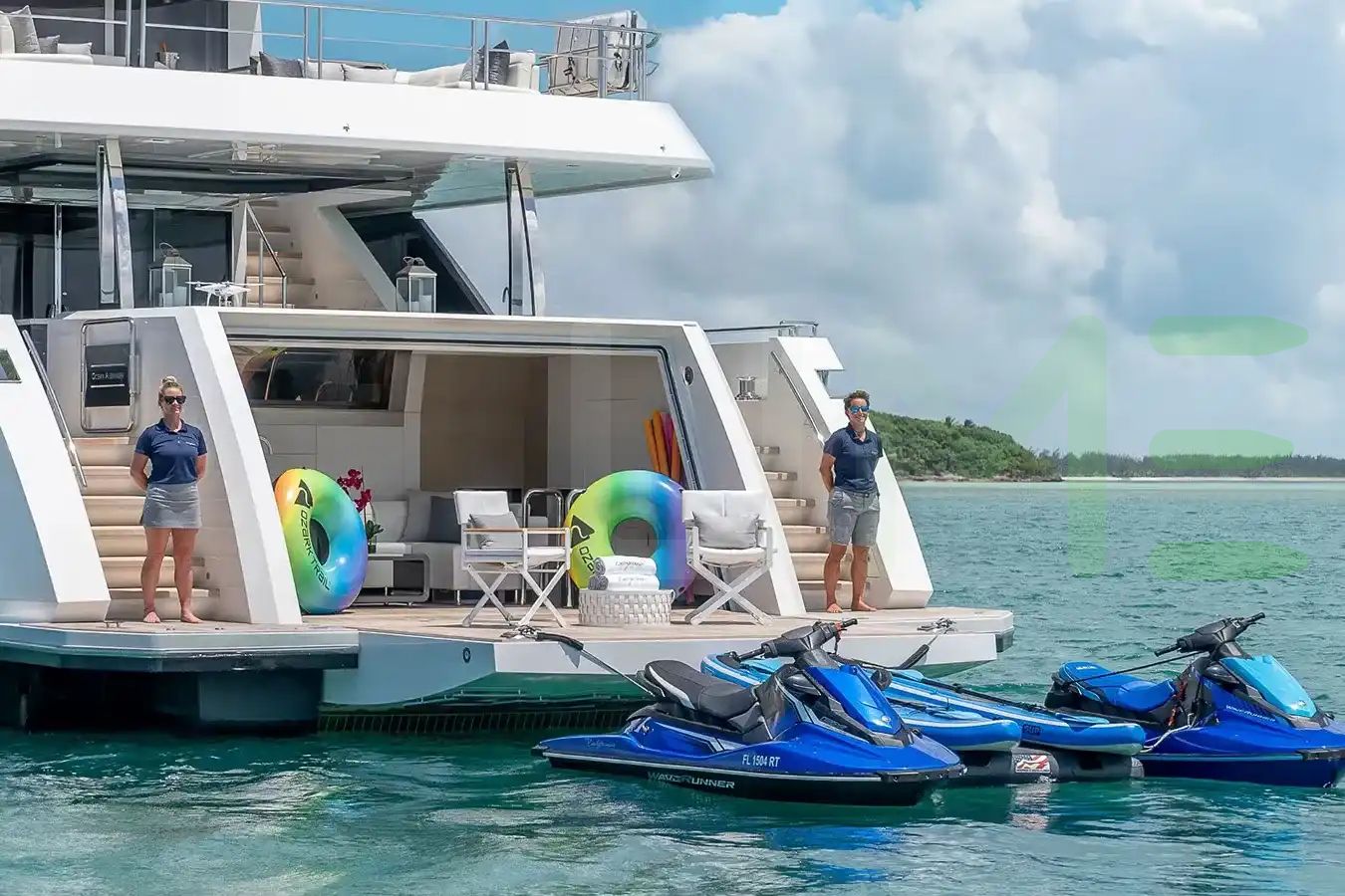 Indulge in the opulent comforts of spacious lounges, gourmet dining areas, and elegantly appointed staterooms. Savor the breathtaking views from the open decks, unwind on a sun lounge, or stay active in the water. For adventure enthusiasts, the ENTREPRENEUR motoryacht is equipped with an array of water toys. Dive into the crystal-clear waters for a refreshing swim, explore hidden coves, or experience the thrill of wakeboarding. With attentive crew members catering to your every need, a yacht charter promises an unforgettable blend of relaxation, luxury, and adventure.