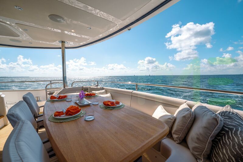 The exterior, designed by Sunseeker, captures your attention with beautiful lines and impeccable craftsmanship. Whether you're lounging on the spacious decks or enjoying water sports in a secluded anchorage, the EOS yacht for charter, built of GRP, offers a wealth of opportunities for relaxation and adventure.