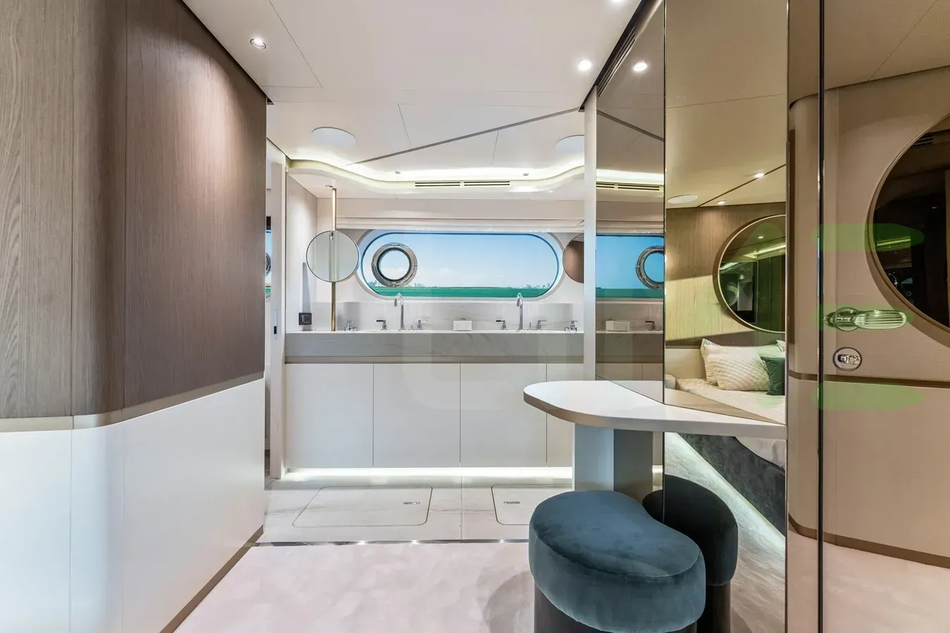 With a gross tonnage of 110, the EQUITES yacht for charter provides ample interior space for enjoyment. EQUITES offers accommodations for up to 8 guests . She can also carry up to 3 crew onboard, including the Captain, to ensure a relaxed luxury yacht charter experience. The interior design by Azimut Yachts exudes a sense of luxury, seamlessly blending comfort with style.