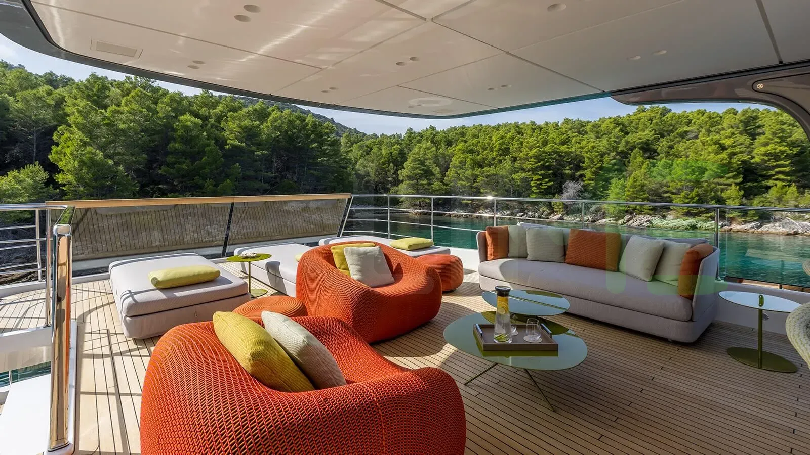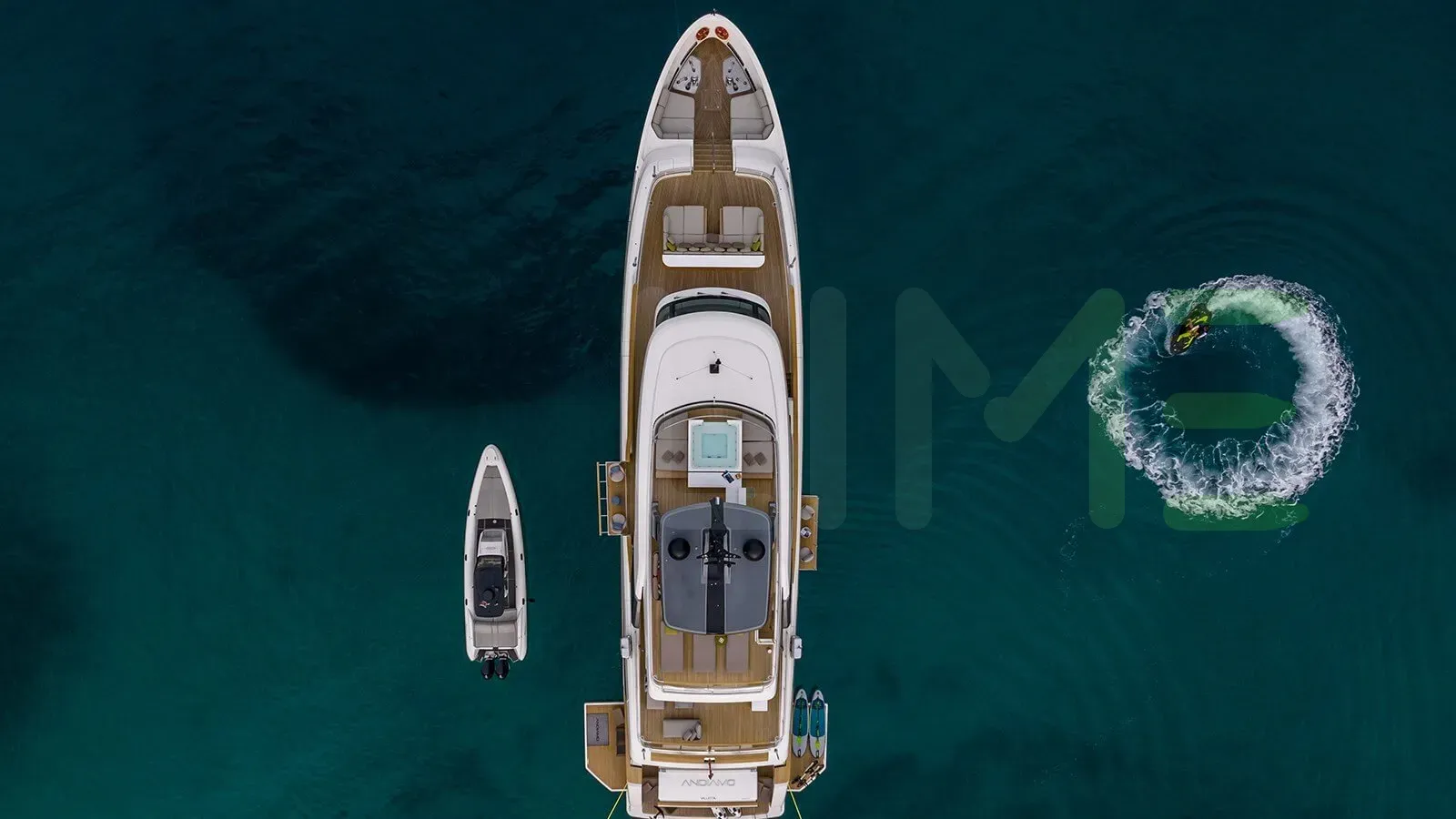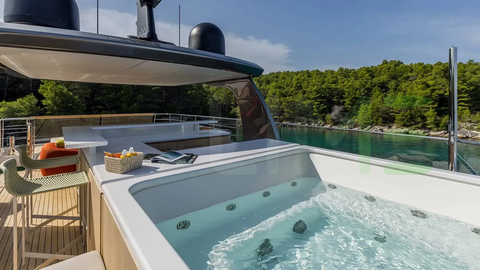 Keeping comfortable and entertained on Andiamo is easy thanks to the available amenities including a deck jacuzzi, perfect to enjoy the scenery with your favourite drink in hand.