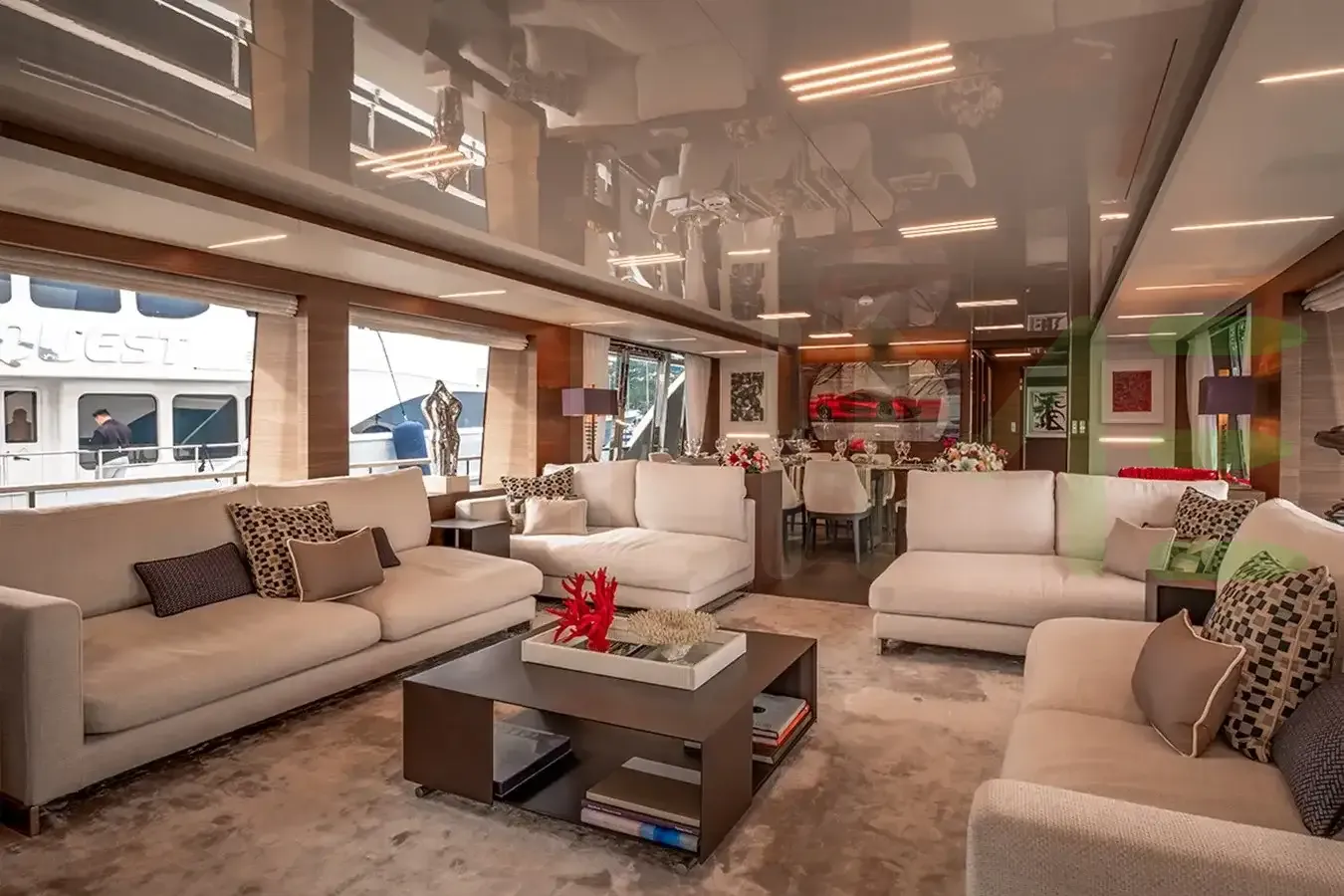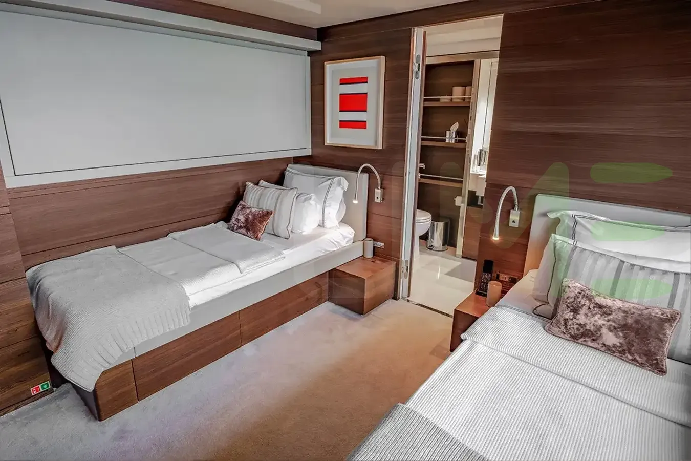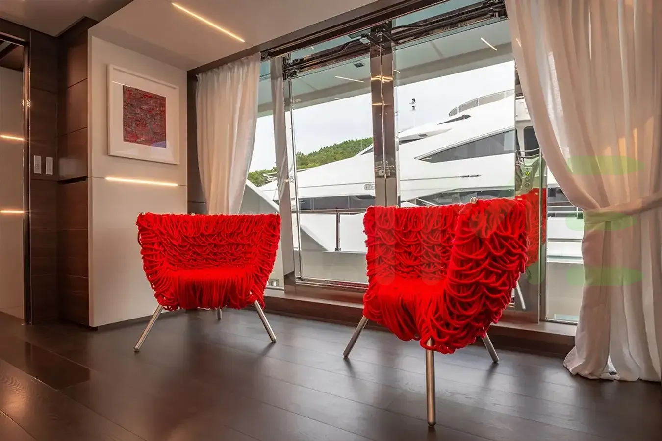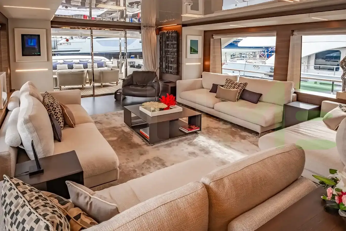 With a gross tonnage of 290, the EUPHORIA yacht for charter provides ample interior space for enjoyment. EUPHORIA offers accommodations for up to 10 guests in 5 lavishly appointed staterooms. She can also carry up to 7 crew onboard, including the Captain, to ensure a relaxed luxury yacht charter experience. The interior design by Zuccon International Project exudes a sense of luxury, seamlessly blending comfort with style.