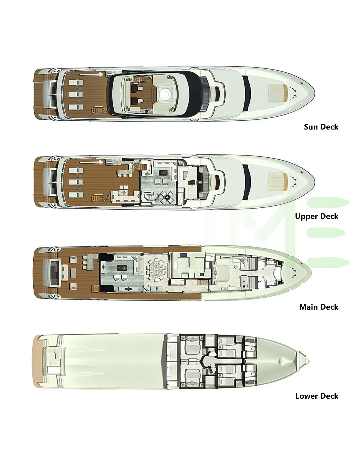 Request plans that include the layout of staterooms, guest areas, and outdoor spaces, as well as crew quarters and work areas.