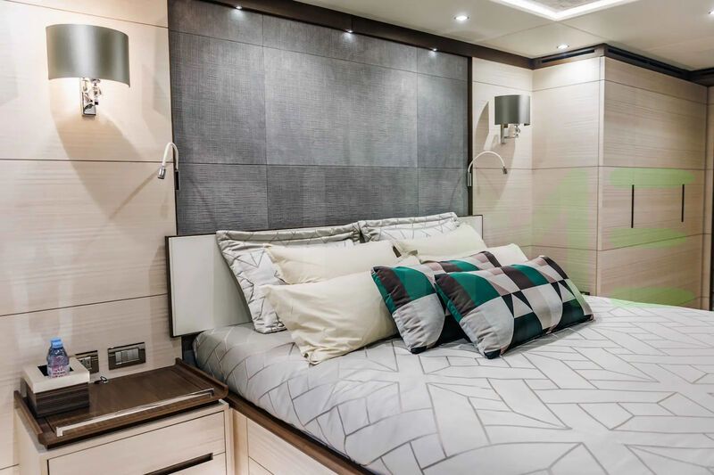 Her features include underwater lights, deck jacuzzi, WiFi and air conditioning.