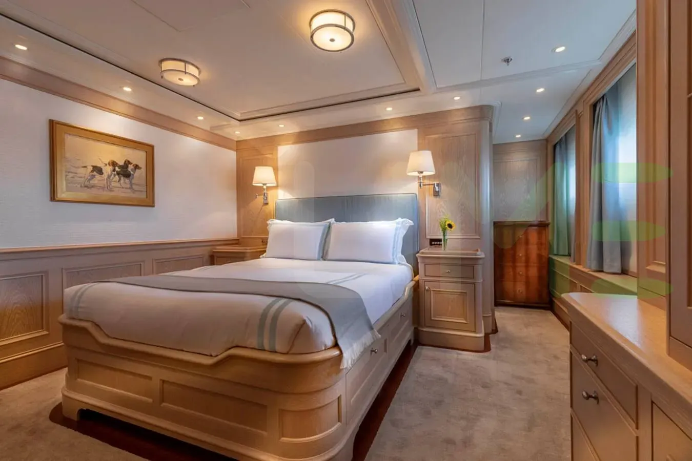With a gross tonnage of 453, the FABULOUS CHARACTER yacht for charter provides ample interior space for enjoyment. FABULOUS CHARACTER offers accommodations for up to 10 guests in 5 lavishly appointed staterooms. She can also carry up to 9 crew onboard, including the Captain, to ensure a relaxed luxury yacht charter experience. The interior design by Rhoades Young Design exudes a sense of luxury, seamlessly blending comfort with style.