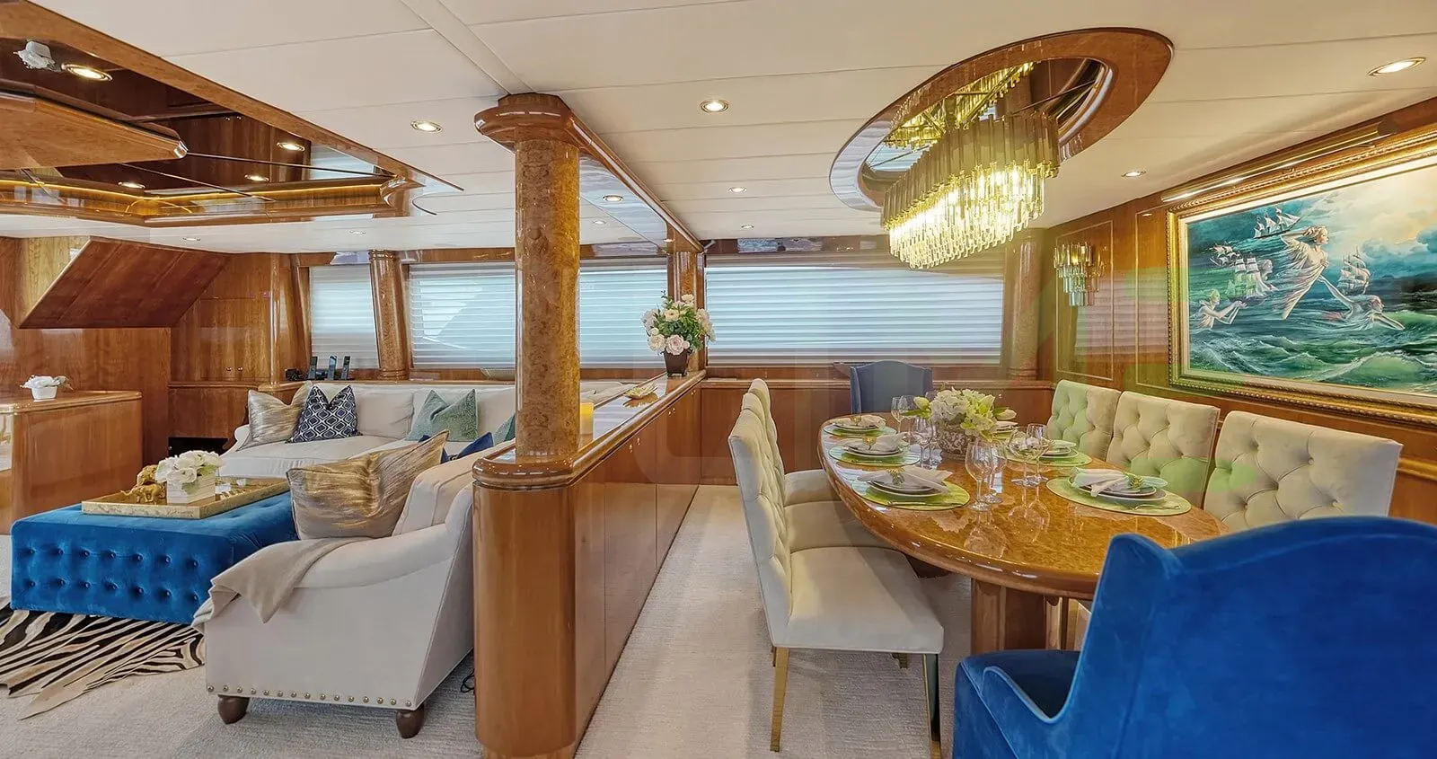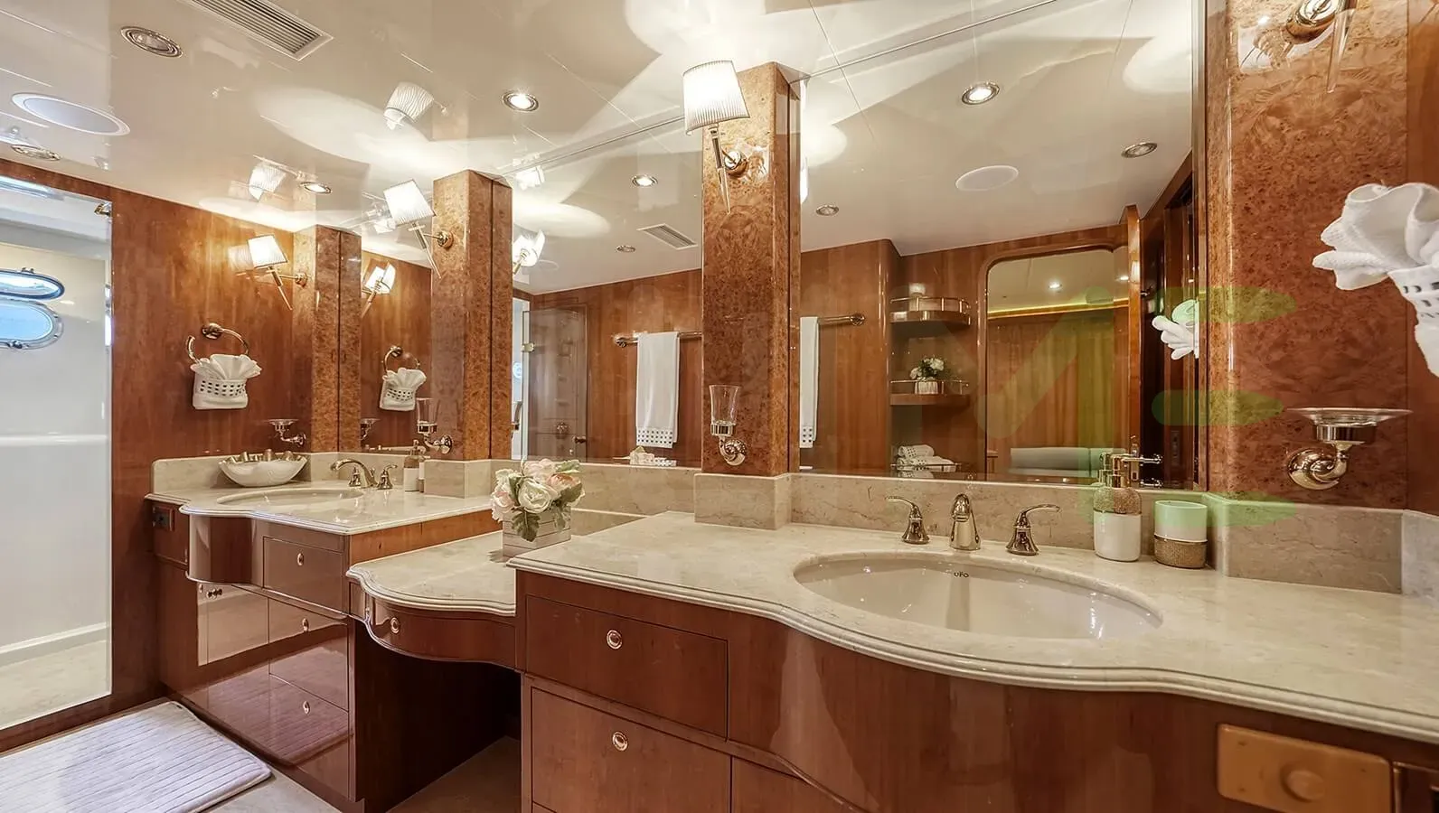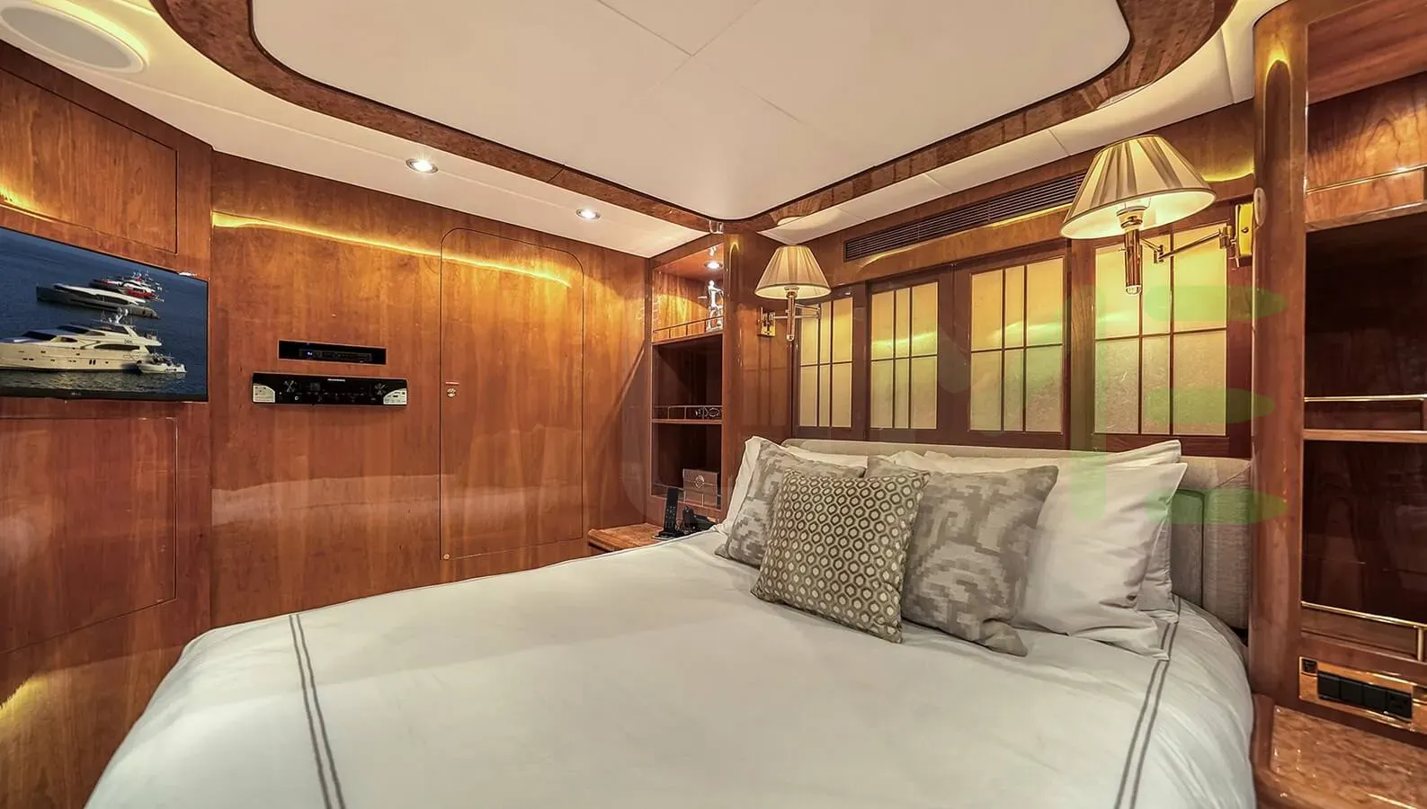 With a gross tonnage of 157, the FANTASEA yacht for charter provides ample interior space for enjoyment. FANTASEA offers accommodations for up to 6 guests in 3 lavishly appointed staterooms. She can also carry up to 4 crew onboard, including the Captain, to ensure a relaxed luxury yacht charter experience. The interior design by Horizon Yachts exudes a sense of luxury, seamlessly blending comfort with style.