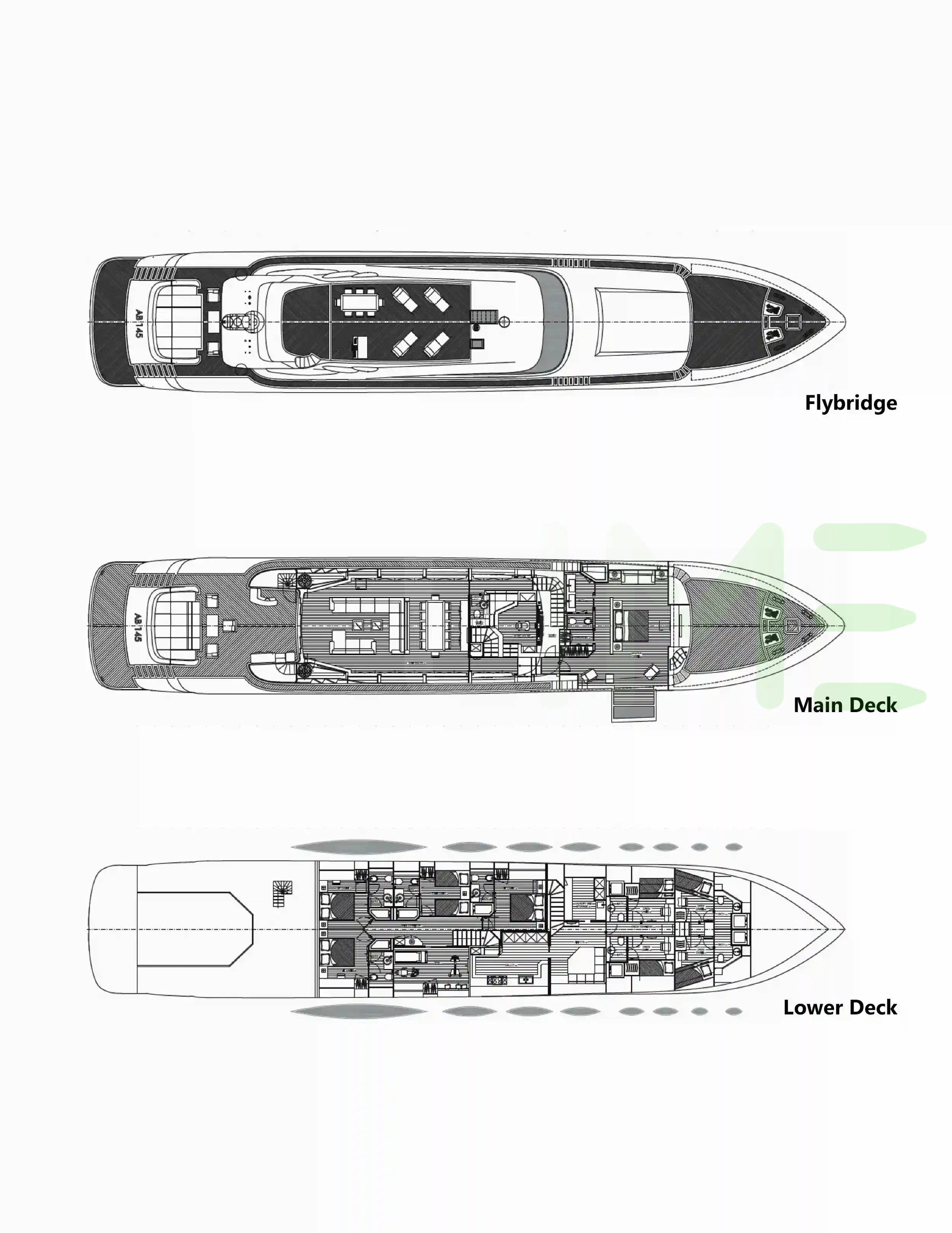 Request plans that include the layout of staterooms, guest areas, and outdoor spaces, as well as crew quarters and work areas.