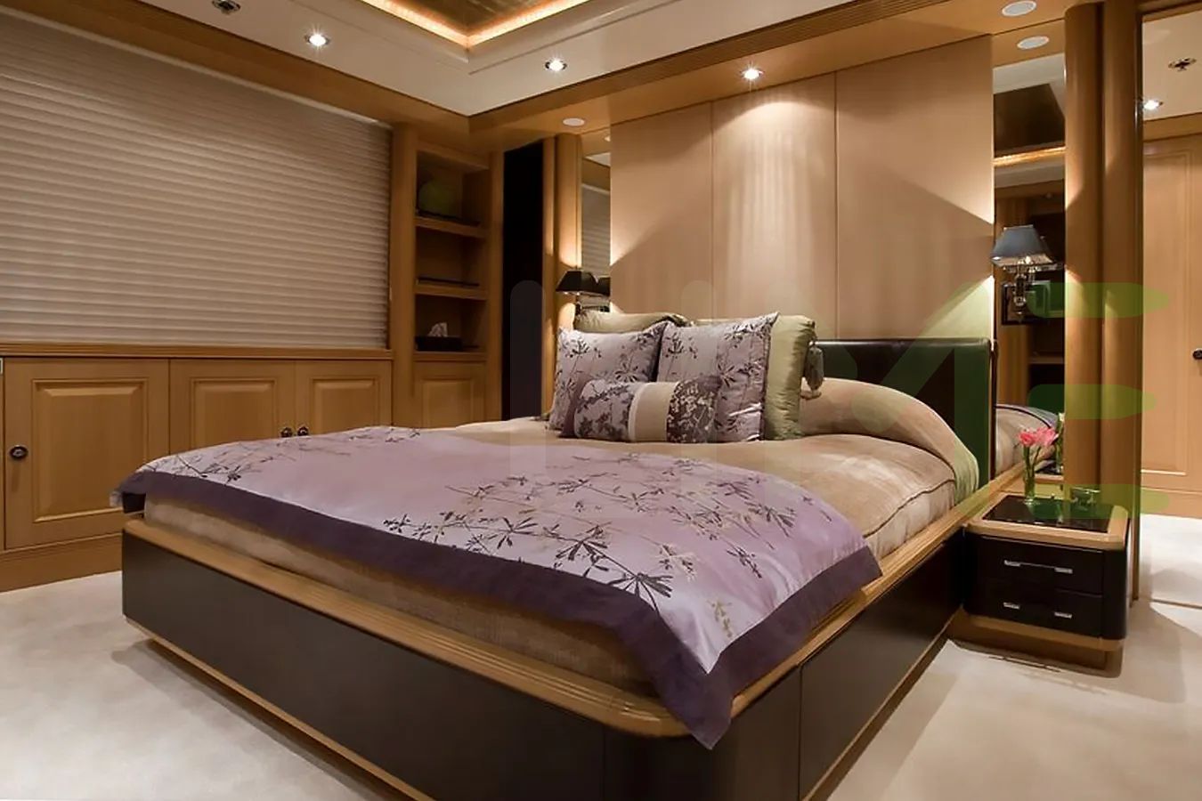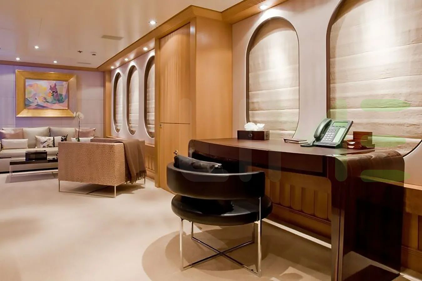 With a gross tonnage of 613, the FAUDA yacht for charter provides ample interior space for enjoyment. FAUDA offers accommodations for up to 12 guests in 5 lavishly appointed staterooms. She can also carry up to 12 crew onboard, including the Captain, to ensure a relaxed luxury yacht charter experience. The interior design by Terence Disdale Design, Reymond Langton Design Ltd. exudes a sense of luxury, seamlessly blending comfort with style.