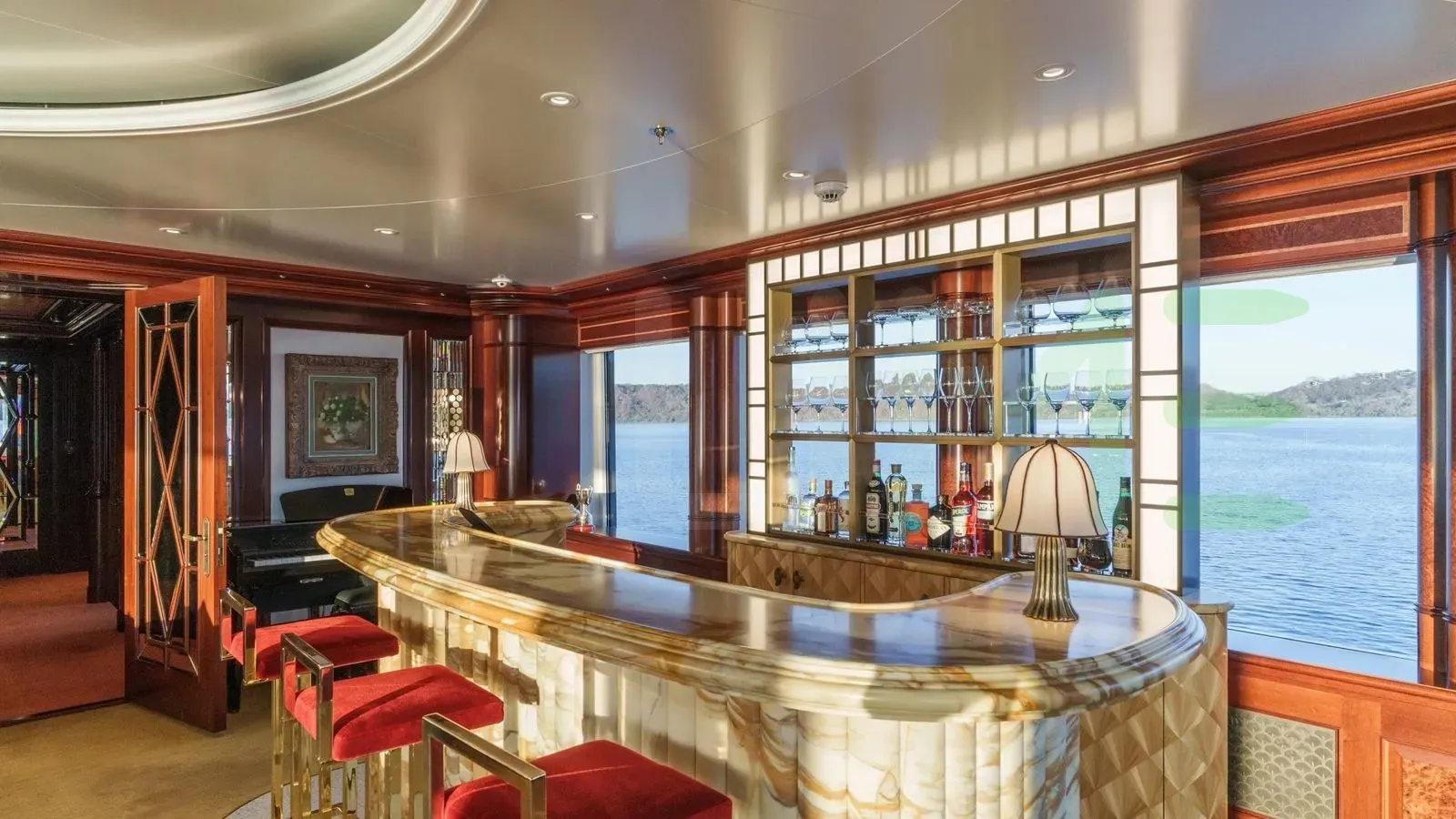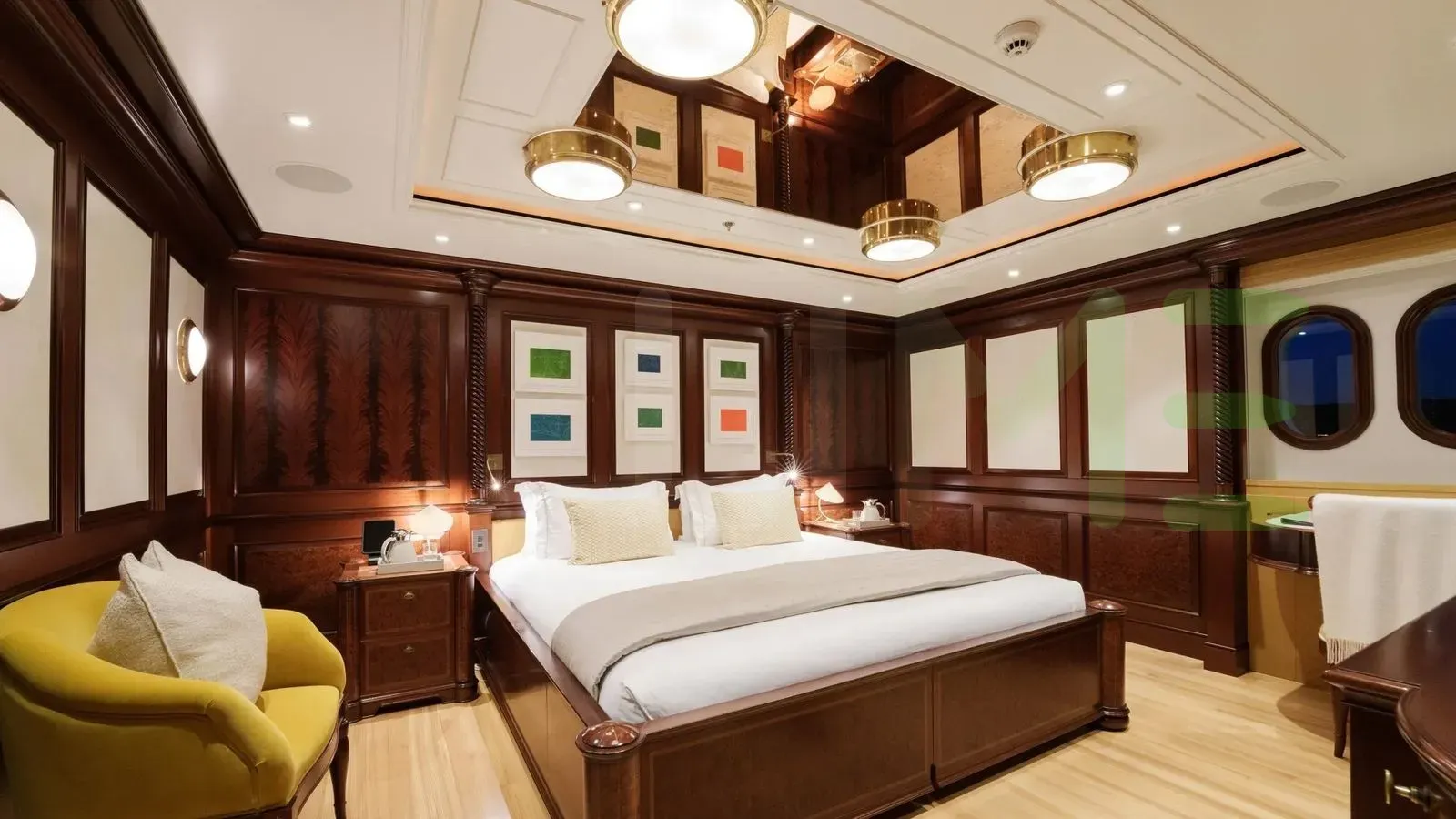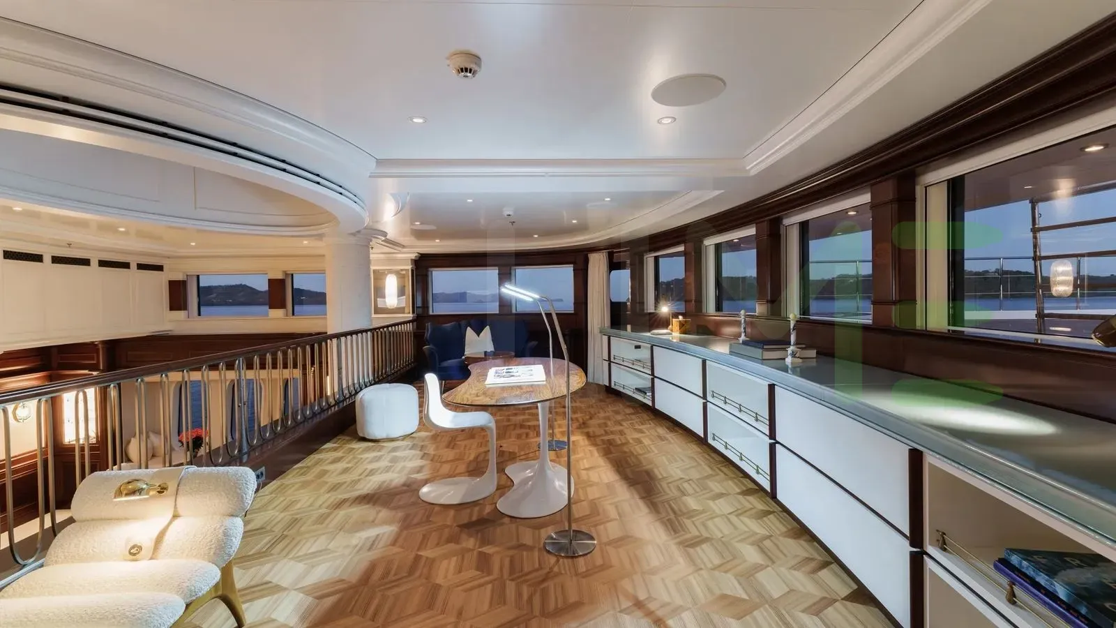 With a gross tonnage of 1,557, the FIREBIRD yacht for charter provides ample interior space for enjoyment. FIREBIRD offers accommodations for up to 17 guests in 7 lavishly appointed staterooms. She can also carry up to 19 crew onboard, including the Captain, to ensure a relaxed luxury yacht charter experience. The interior design by Michael Leach Design Ltd., Bryan O'Sullivan Studio exudes a sense of luxury, seamlessly blending comfort with style.