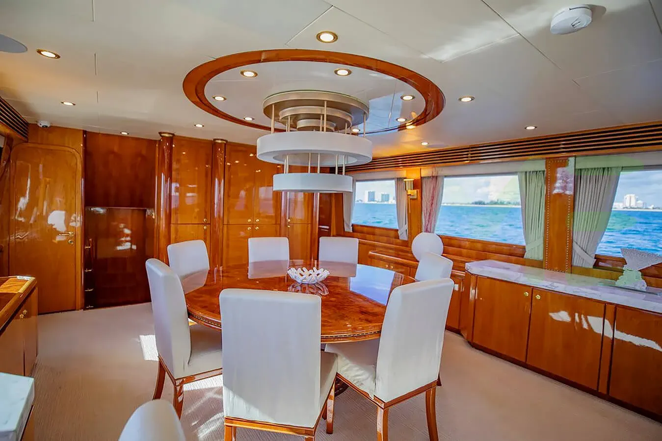 With a gross tonnage of 148, the FLY BOYS yacht for charter provides ample interior space for enjoyment. FLY BOYS offers accommodations for up to 10 guests in 4 lavishly appointed staterooms. She can also carry up to 5 crew onboard, including the Captain, to ensure a relaxed luxury yacht charter experience. The interior design by Yacht Interiors by Shelley exudes a sense of luxury, seamlessly blending comfort with style.