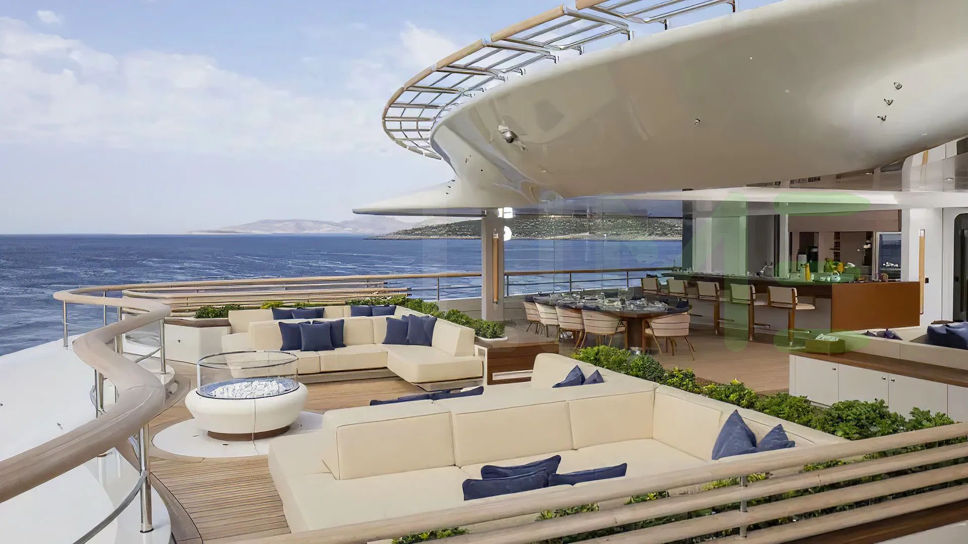 The exterior, designed by Espen Øino International, captures your attention with beautiful lines and impeccable craftsmanship. Whether you're lounging on the spacious decks or enjoying water sports in a secluded anchorage, the FLYING FOX yacht for charter, built of Steel and Aluminium, offers a wealth of opportunities for relaxation and adventure.