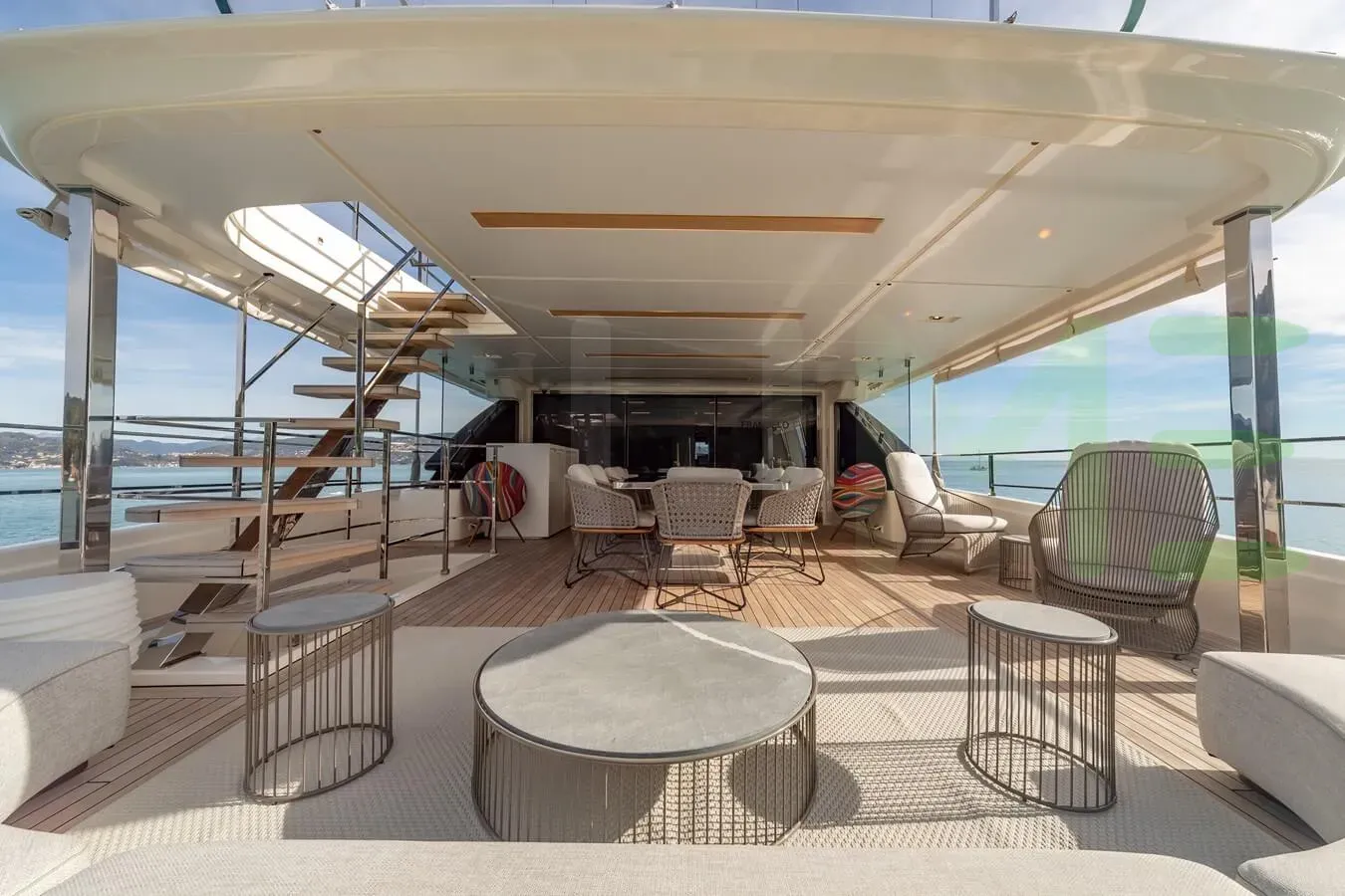 Built by Custom Line in Italy, this stunning yacht boasts a length of 121' 6" (37.04m), a beam of 26' 3" (8m), and a draft of 7' 5" (2.27m).