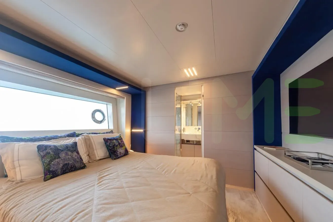 Her features include underwater lights, deck jacuzzi, WiFi and air conditioning.