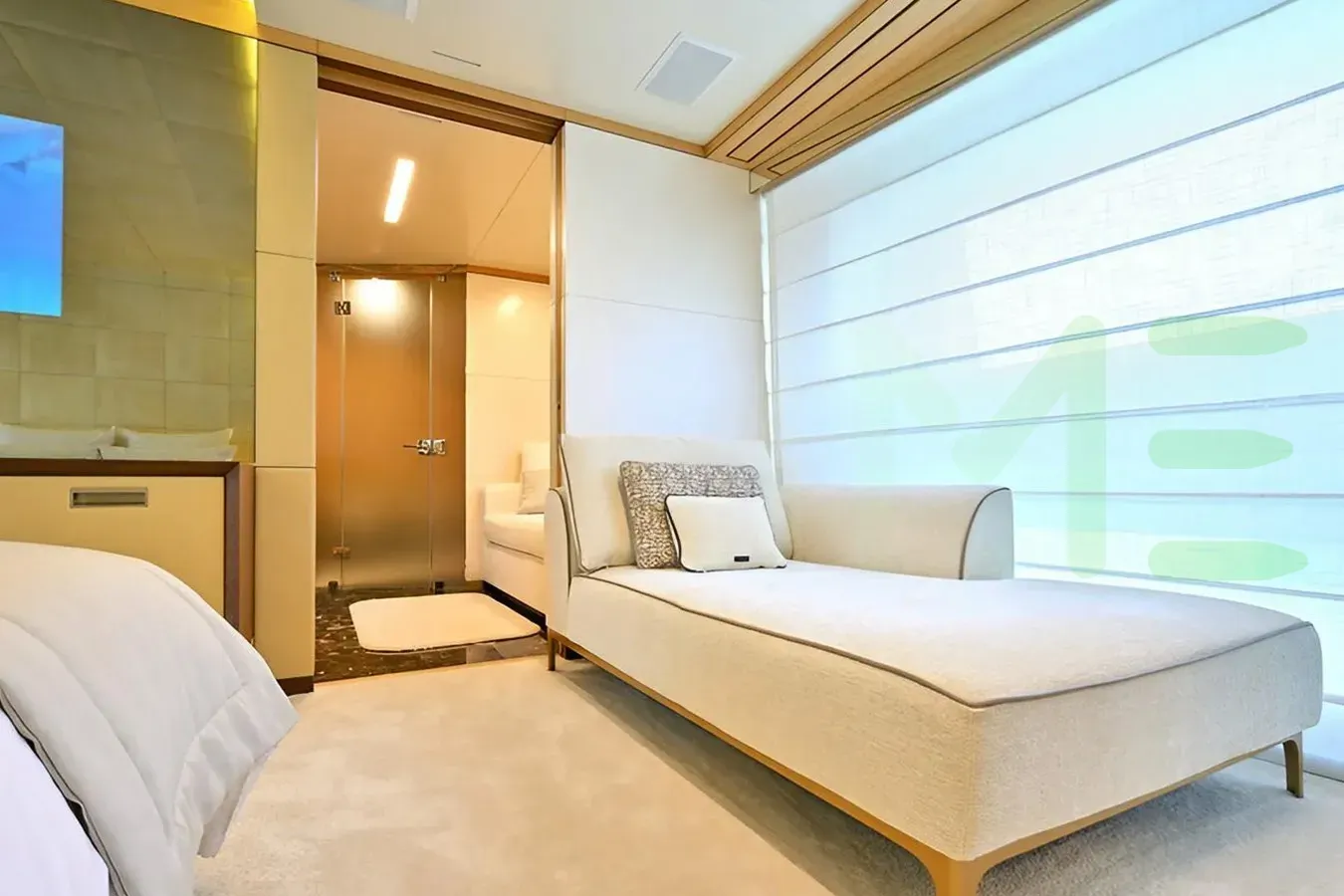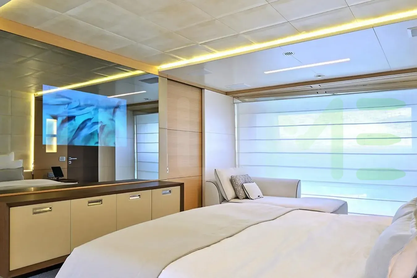 With a gross tonnage of 346, the FREEDAY yacht for charter provides ample interior space for enjoyment. FREEDAY offers accommodations for up to 12 guests in 6 lavishly appointed staterooms. She can also carry up to 7 crew onboard, including the Captain, to ensure a relaxed luxury yacht charter experience. The interior design by Zuretti Interior Design exudes a sense of luxury, seamlessly blending comfort with style.