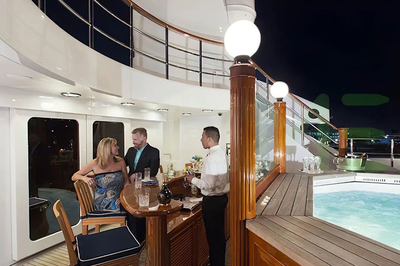A charter on Freedom is comfortable and convenient thanks to the provided amenities such as a gym with all the latest equipment to maintain your fitness routine. Retreat to the deck jacuzzi and soak up the scenery.
