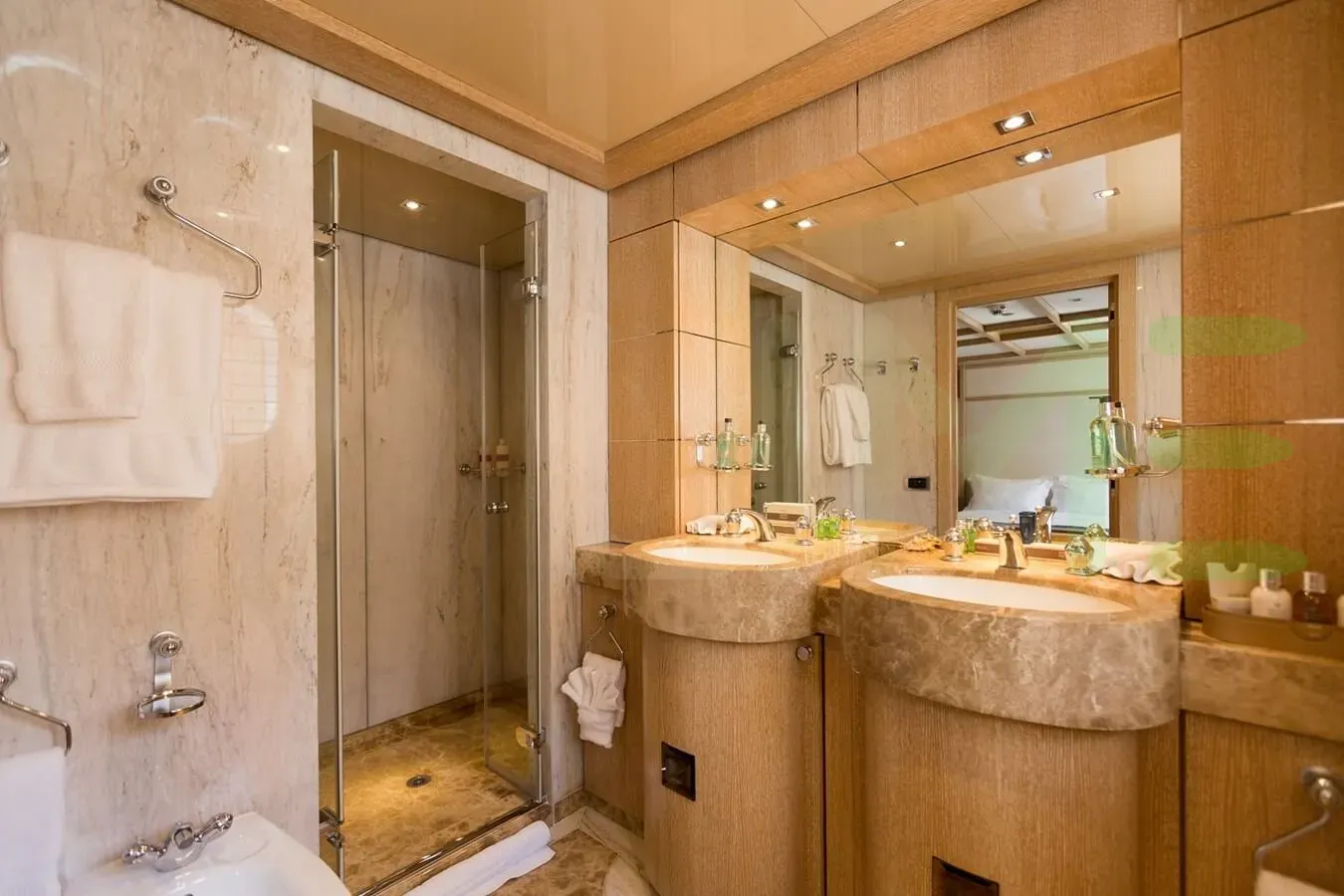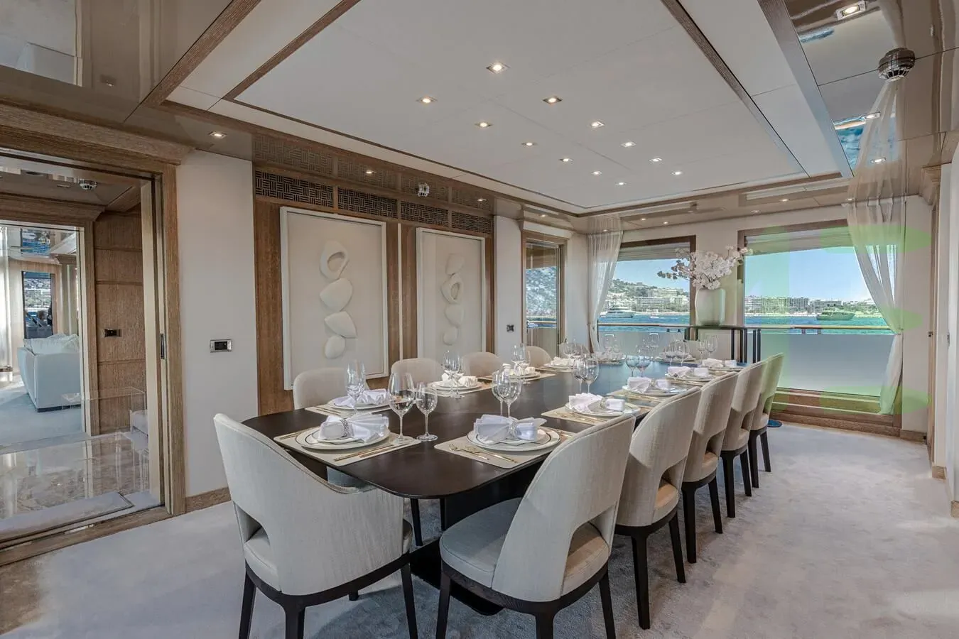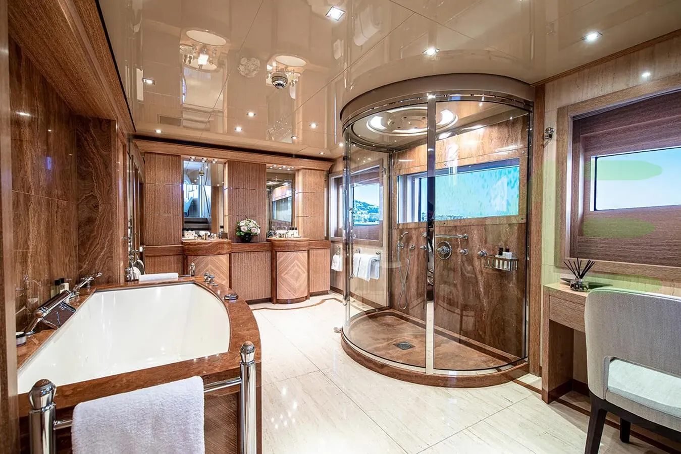 With a gross tonnage of 640, the FRIENDSHIP yacht for charter provides ample interior space for enjoyment. FRIENDSHIP offers accommodations for up to 12 guests in 6 lavishly appointed staterooms. She can also carry up to 11 crew onboard, including the Captain, to ensure a relaxed luxury yacht charter experience. The interior design by The A Group, JP - Fantini Design exudes a sense of luxury, seamlessly blending comfort with style.