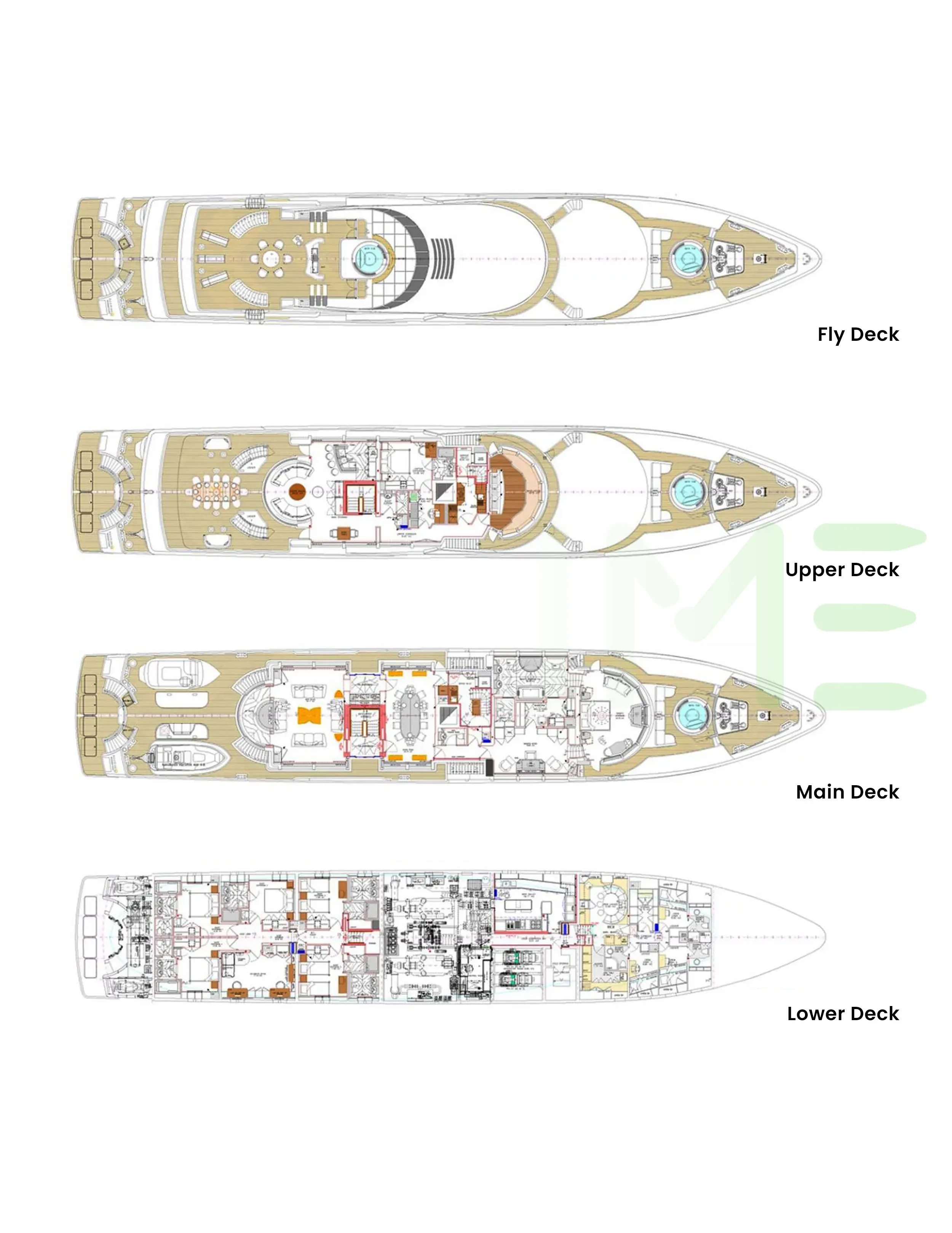 Request plans which include the layout of staterooms, guest areas, and outdoor spaces, as well as crew quarters and working spaces.