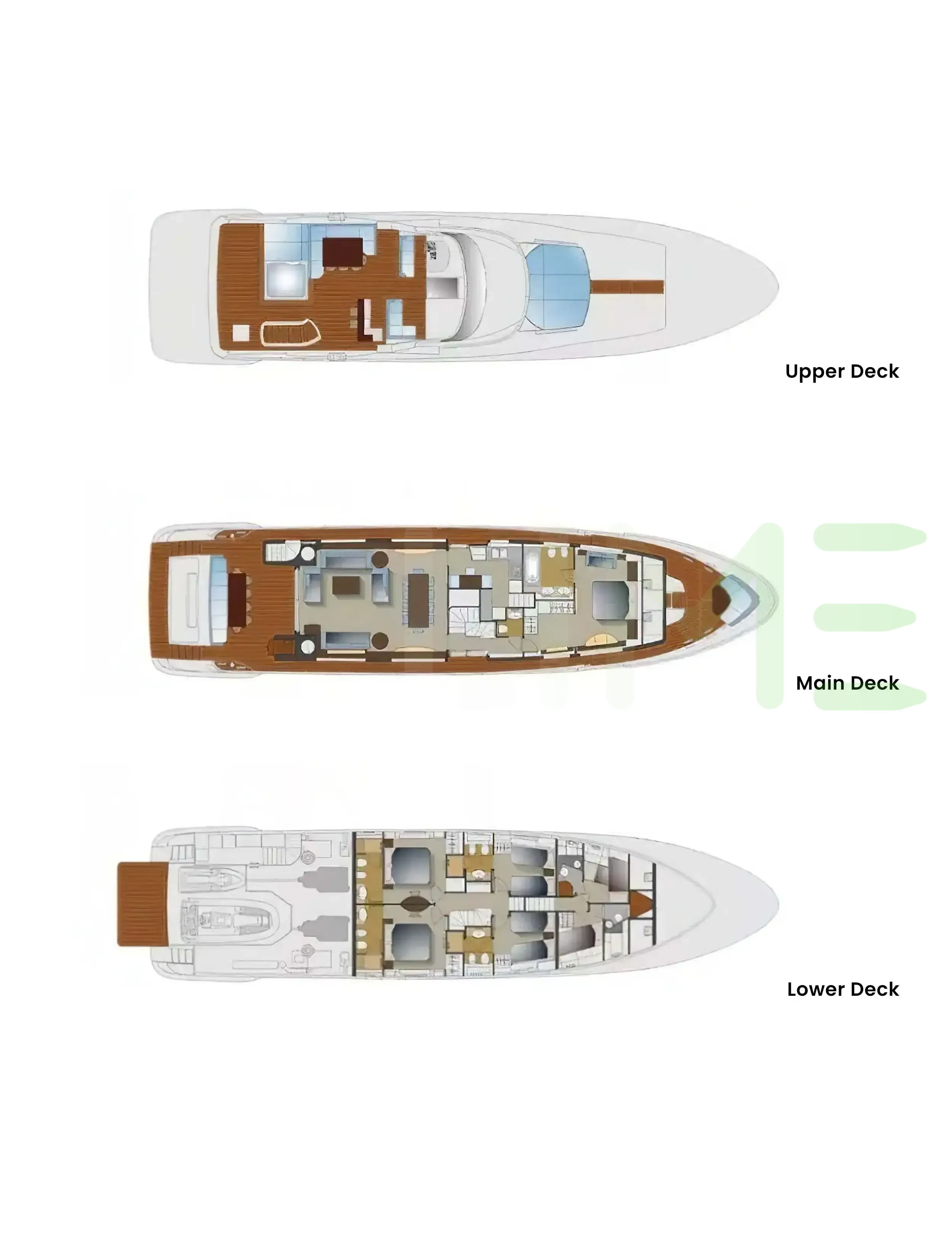 Request plans that include the layout of staterooms, guest areas, and outdoor spaces, as well as crew quarters and work areas.
