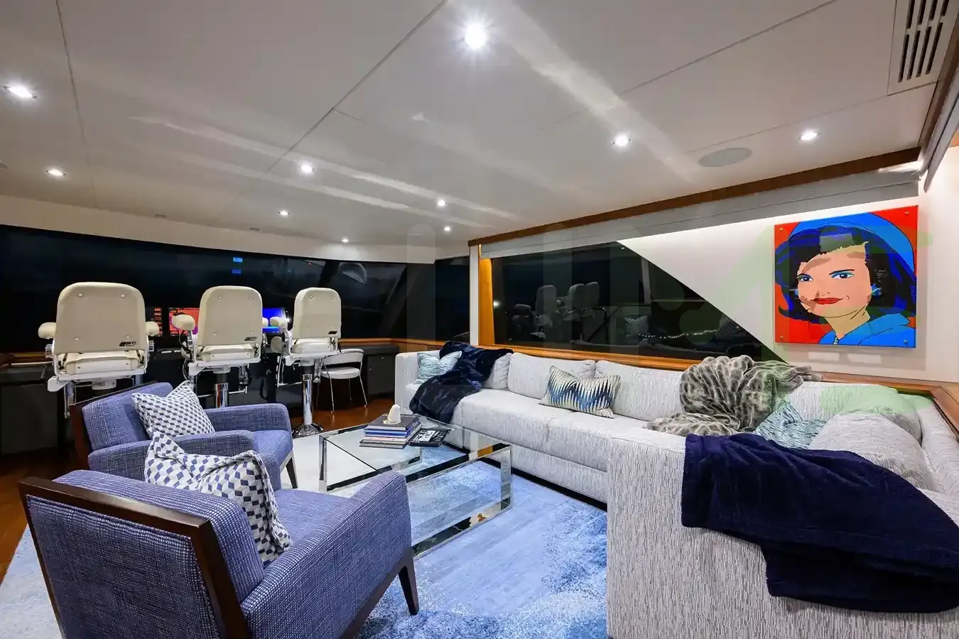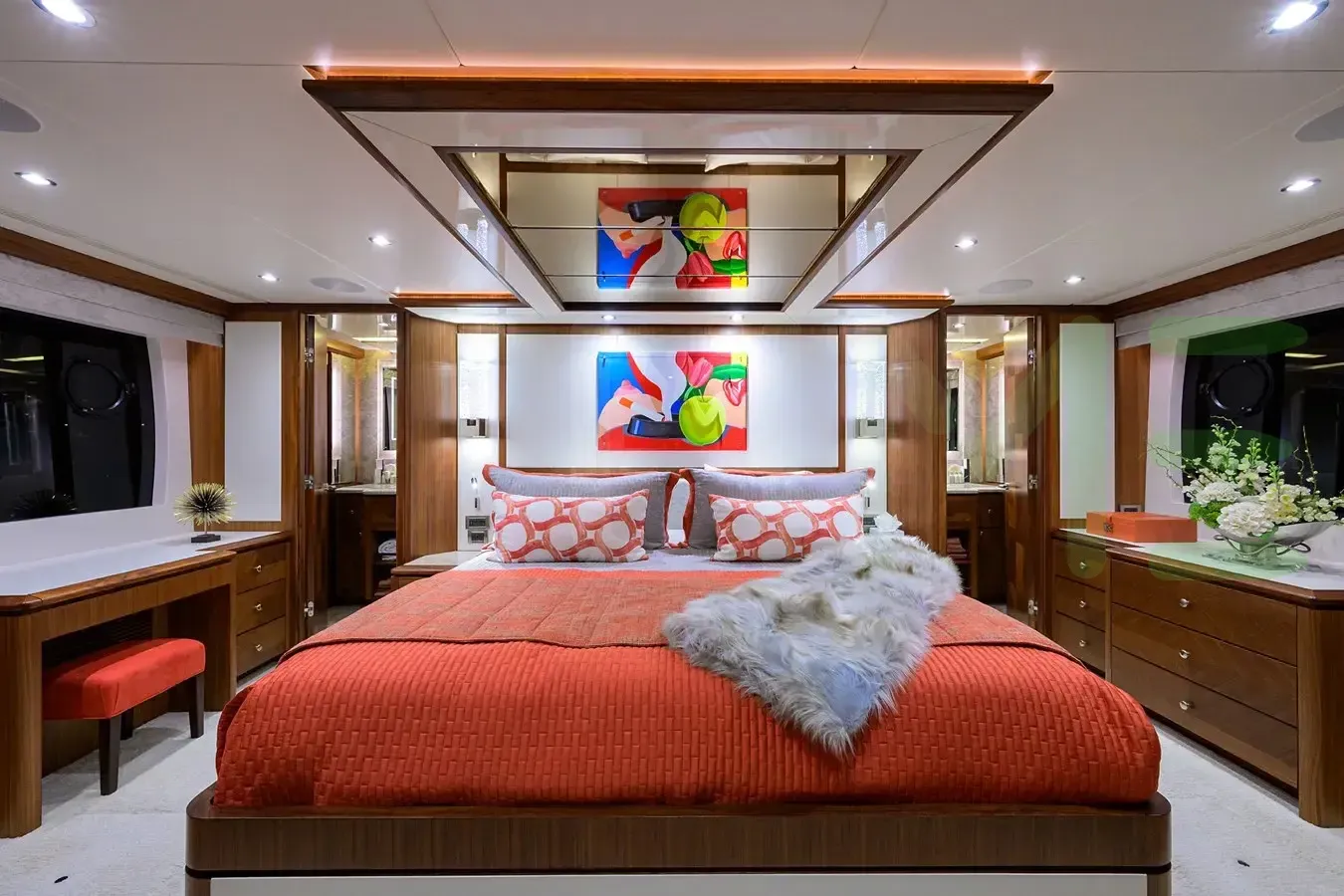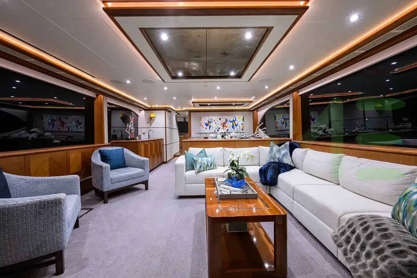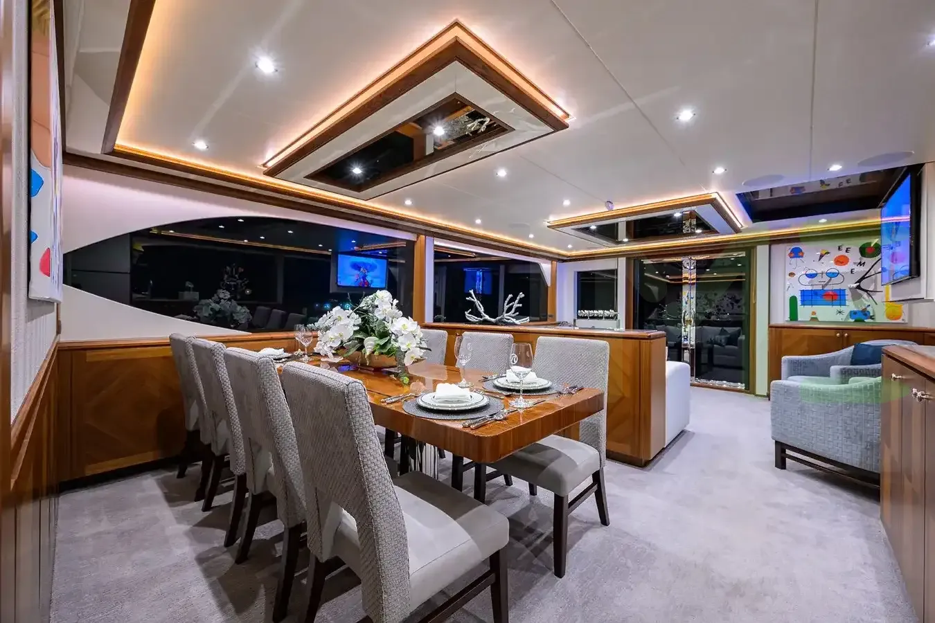 With a gross tonnage of 147, the GG yacht for charter provides ample interior space for enjoyment. GG offers accommodations for up to 8 guests in 4 lavishly appointed staterooms. She can also carry up to 3 crew onboard, including the Captain, to ensure a relaxed luxury yacht charter experience. The interior design by Evan K Marshall exudes a sense of luxury, seamlessly blending comfort with style.