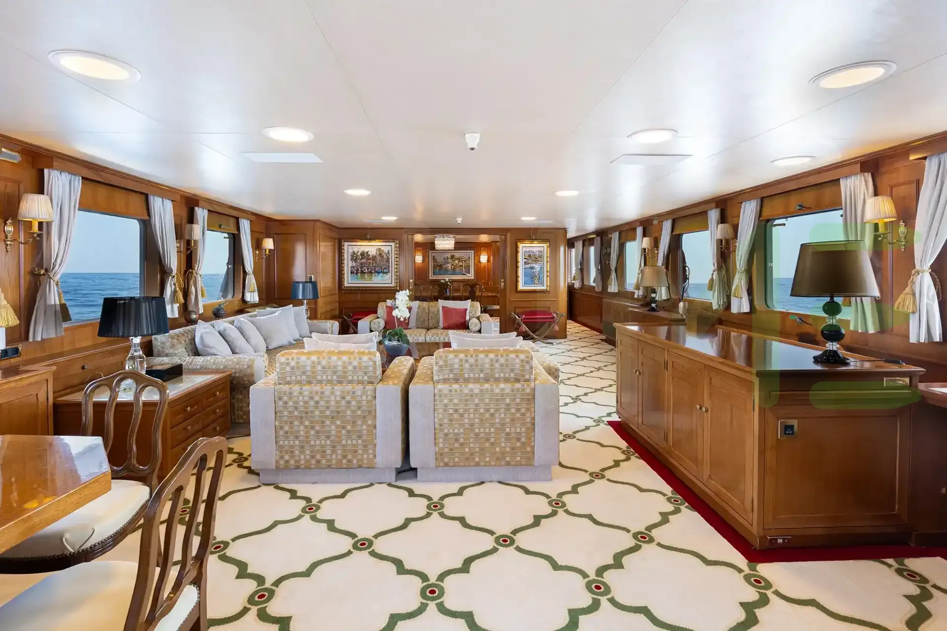 With a gross tonnage of 387, the GIN TONIC yacht for charter provides ample interior space for enjoyment. GIN TONIC offers accommodations for up to 12 guests in 6 lavishly appointed staterooms. She can also carry up to 11 crew onboard, including the Captain, to ensure a relaxed luxury yacht charter experience. The interior design by Sally MacMillan exudes a sense of luxury, seamlessly blending comfort with style.