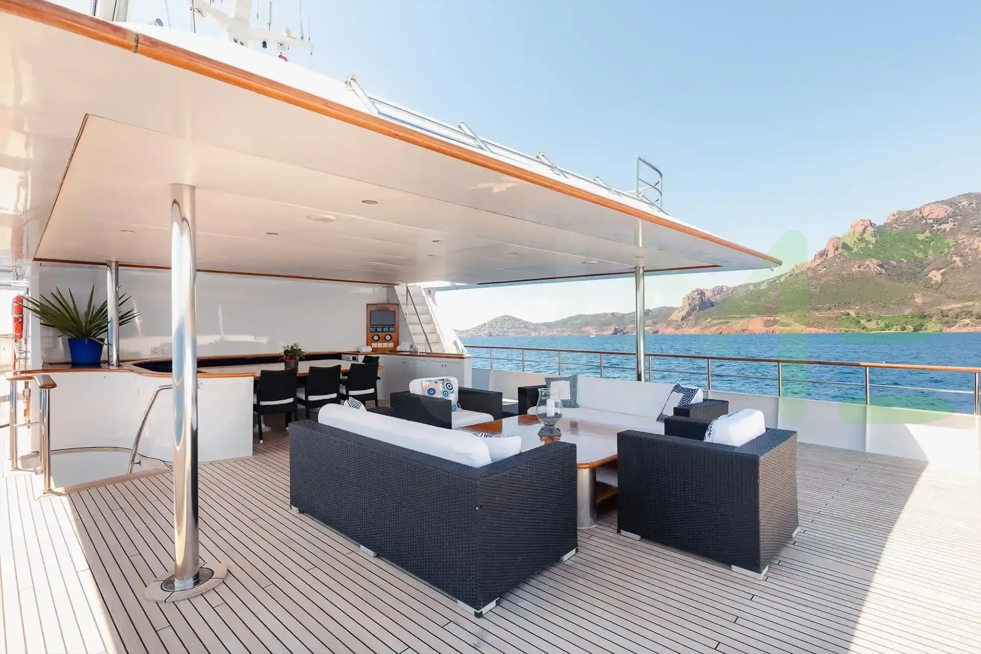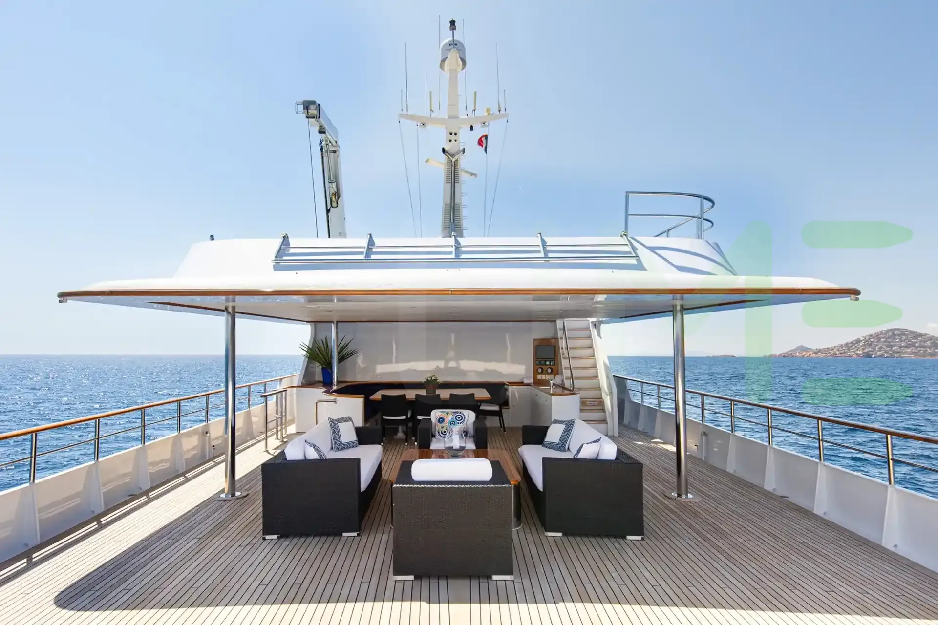 The exterior, designed by De Voogt Naval Architects, captures your attention with beautiful lines and impeccable craftsmanship. Whether you're lounging on the spacious decks or enjoying water sports in a secluded anchorage, the GIN TONIC yacht for charter, built of Steel and Aluminium, offers a wealth of opportunities for relaxation and adventure.