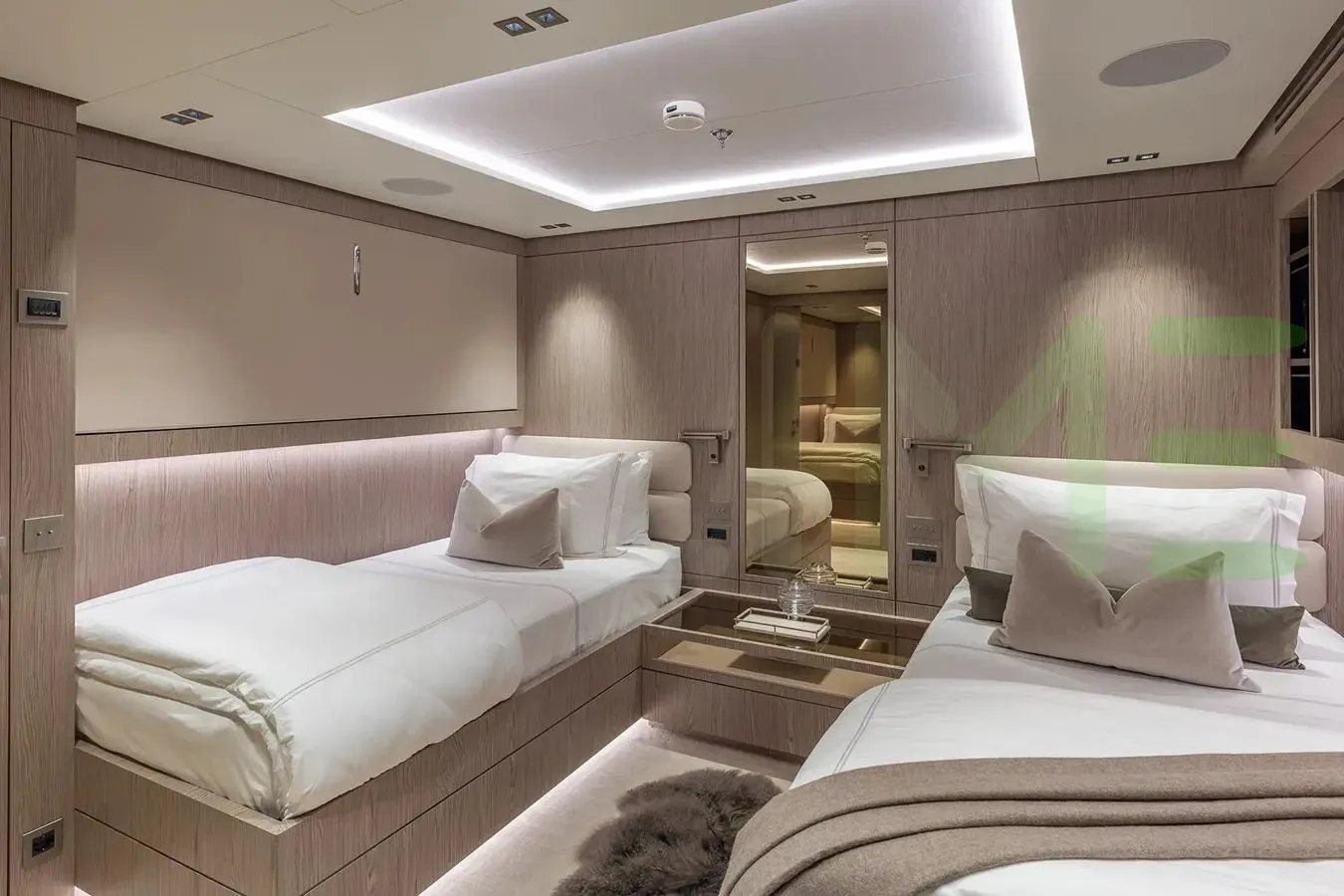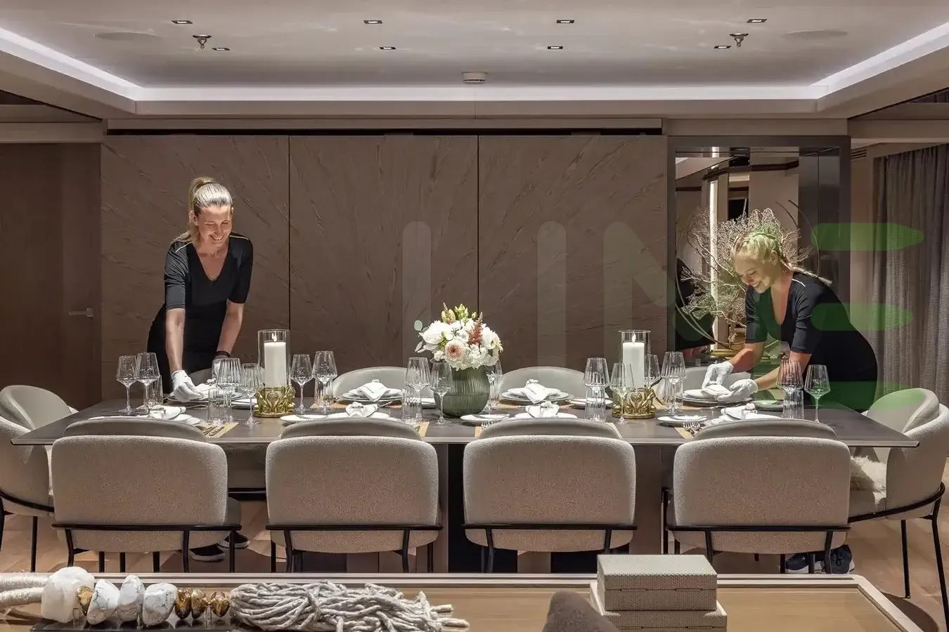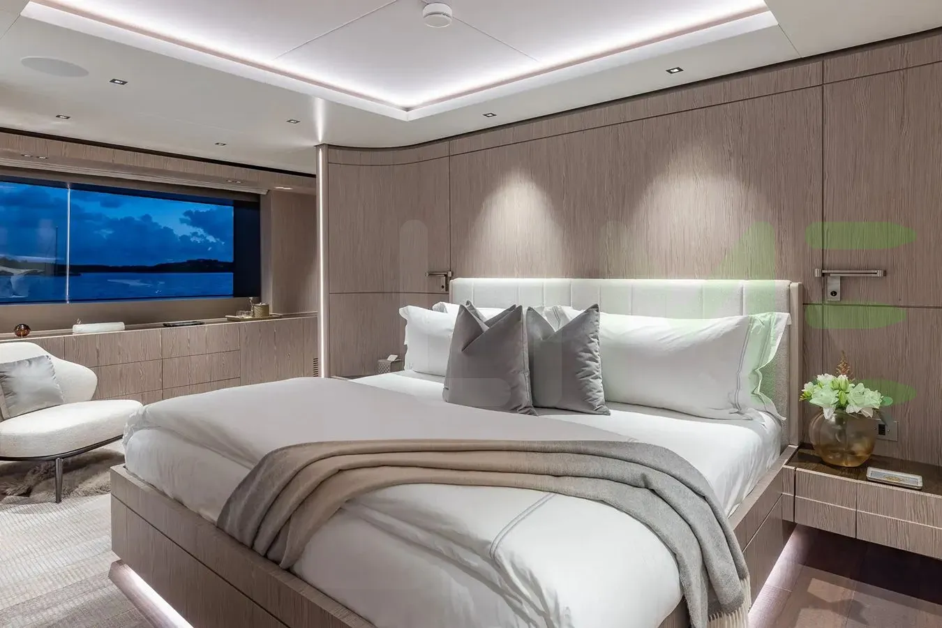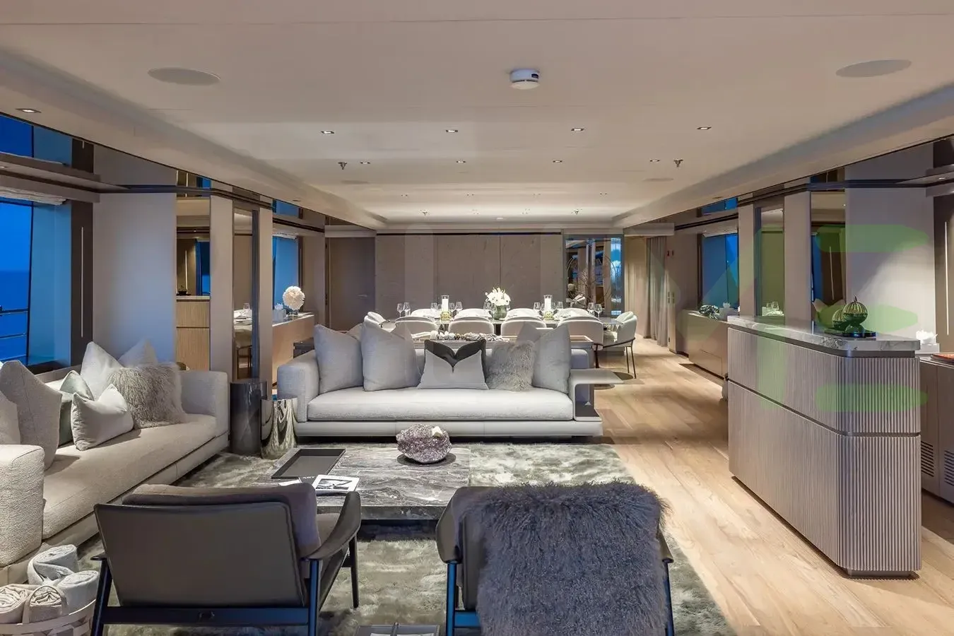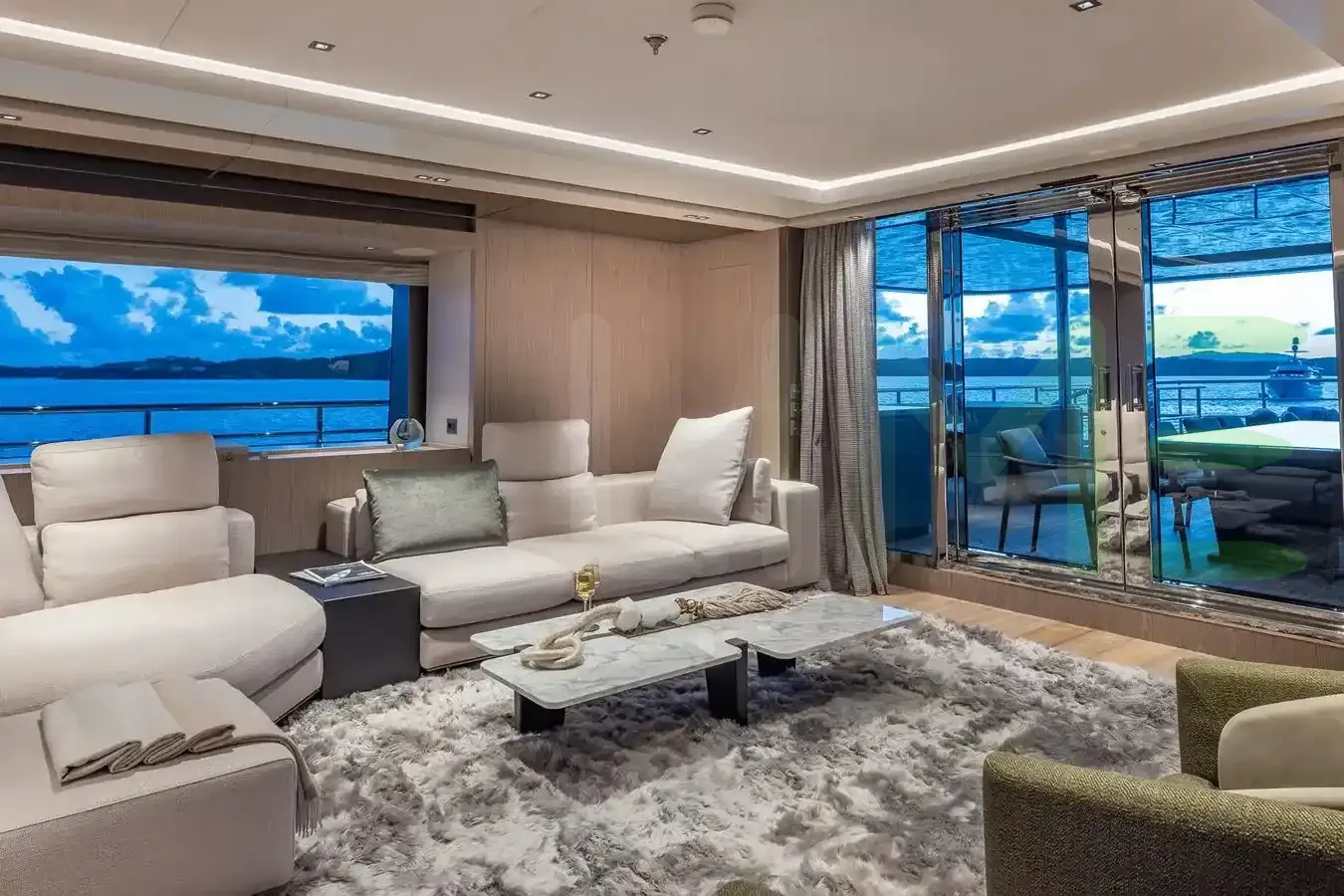 With a gross tonnage of 499, the GIOIA yacht for charter provides ample interior space for enjoyment. GIOIA offers accommodations for up to 10 guests . She can also carry up to 9 crew onboard, including the Captain, to ensure a relaxed luxury yacht charter experience. The interior design by Zepeda Design exudes a sense of luxury, seamlessly blending comfort with style.