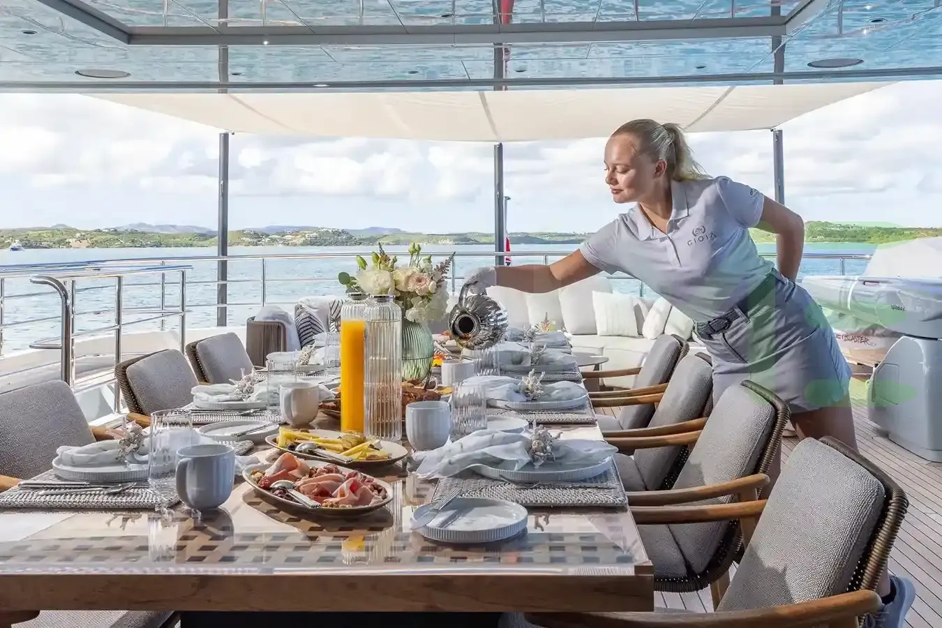 Manned by a dedicated crew of 9 professionals, your every need will be catered to with the utmost attention to detail. The GIOIA Yacht for charter is the epitome of refined luxury, making it the ideal choice for those seeking an unforgettable charter experience. Embark on a journey of a lifetime aboard motoryacht GIOIA, where every moment is crafted to perfection.