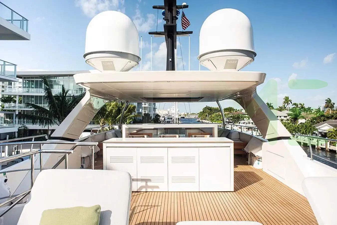 Her features include underwater lights, deck jacuzzi, WiFi and air conditioning.