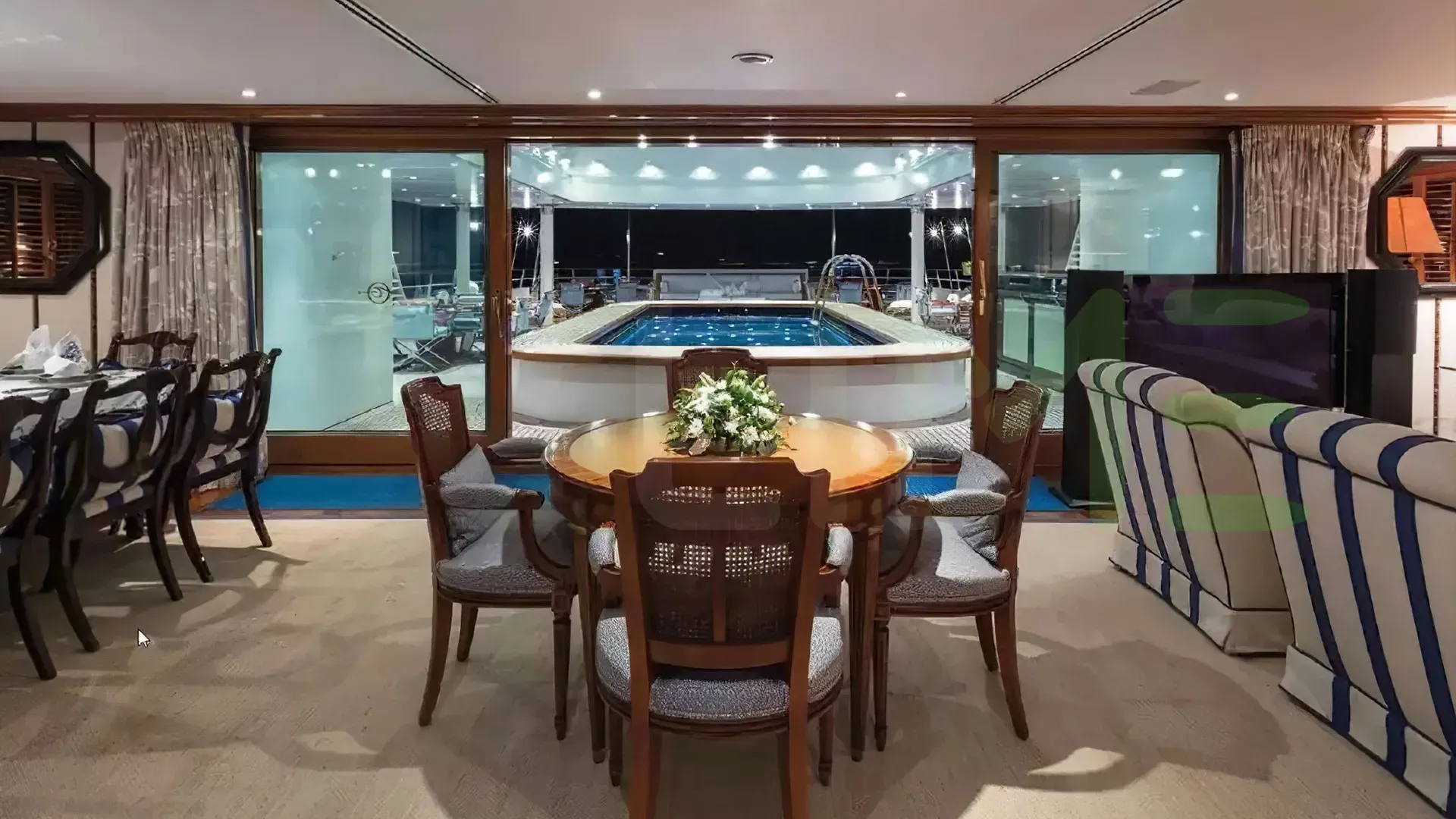 Her features include a beauty salon, spa, beauty salon, elevator, beach club, gym and air conditioning.