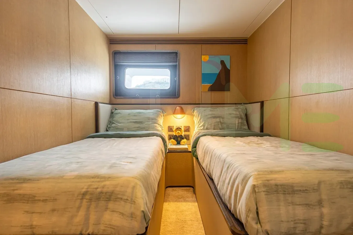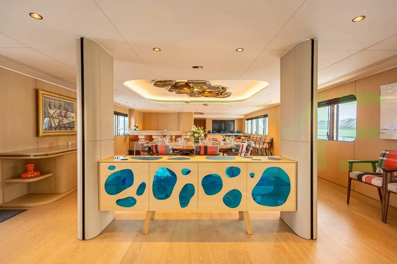 With a gross tonnage of 339, the GRAND CRU yacht for charter provides ample interior space for enjoyment. GRAND CRU offers accommodations for up to 12 guests in 7 lavishly appointed staterooms. She can also carry up to 7 crew onboard, including the Captain, to ensure a relaxed luxury yacht charter experience. The interior design by Studio Vafiadis exudes a sense of luxury, seamlessly blending comfort with style.