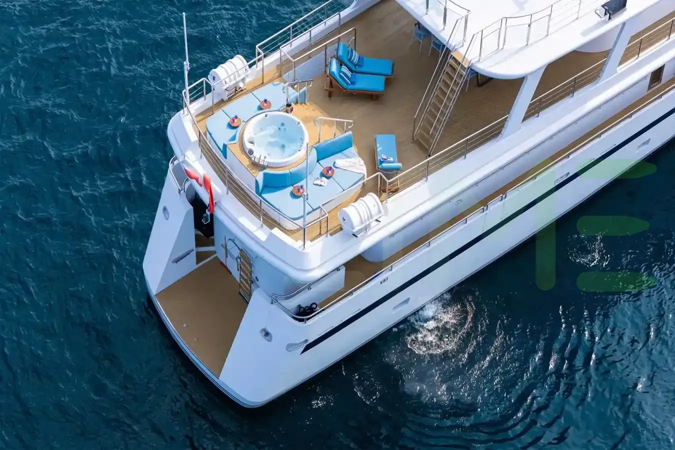 Indulge in the opulent comforts of spacious lounges, gourmet dining areas, and elegantly appointed staterooms. Savor the breathtaking views from the open decks, unwind on a sun lounge, or stay active in the water. For adventure enthusiasts, the GRAND CRU motoryacht is equipped with an array of water toys. Dive into the crystal-clear waters for a refreshing swim, explore hidden coves, or experience the thrill of wakeboarding. With attentive crew members catering to your every need, a yacht charter promises an unforgettable blend of relaxation, luxury, and adventure.