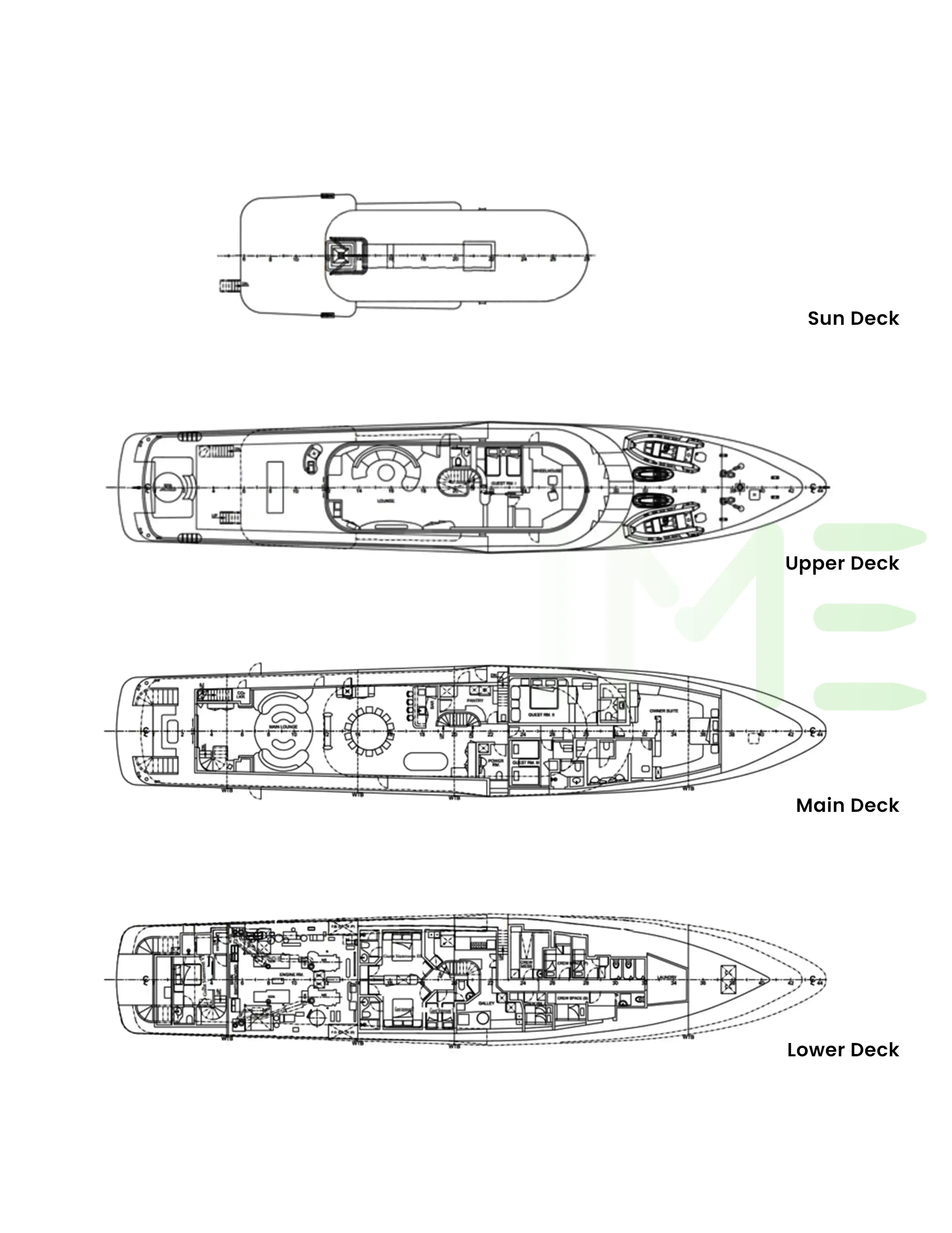 Request plans that include the layout of staterooms, guest areas, and outdoor spaces, as well as crew quarters and work areas.