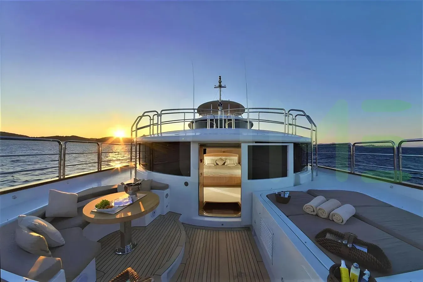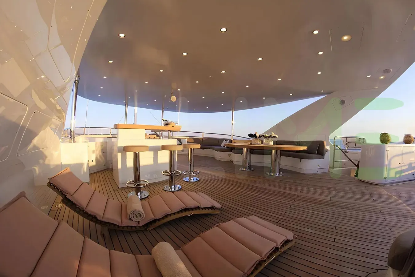 - Generous sundeck with Jacuzzi, sumptuous sun lounging areas and a bar