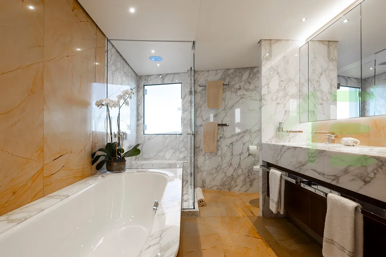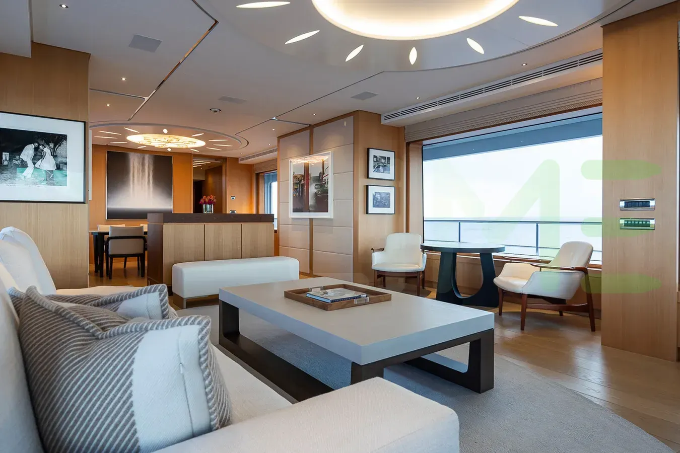With a gross tonnage of 262, the GRAYCLIFFS yacht for charter provides ample interior space for enjoyment. GRAYCLIFFS offers accommodations for up to 8 guests . She can also carry up to 6 crew onboard, including the Captain, to ensure a relaxed luxury yacht charter experience. The interior design by Bannenberg & Rowell Design exudes a sense of luxury, seamlessly blending comfort with style.
