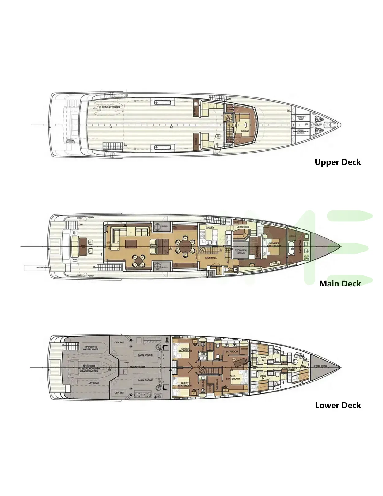 Request plans that include the layout of staterooms, guest areas, and outdoor spaces, as well as crew quarters and work areas.