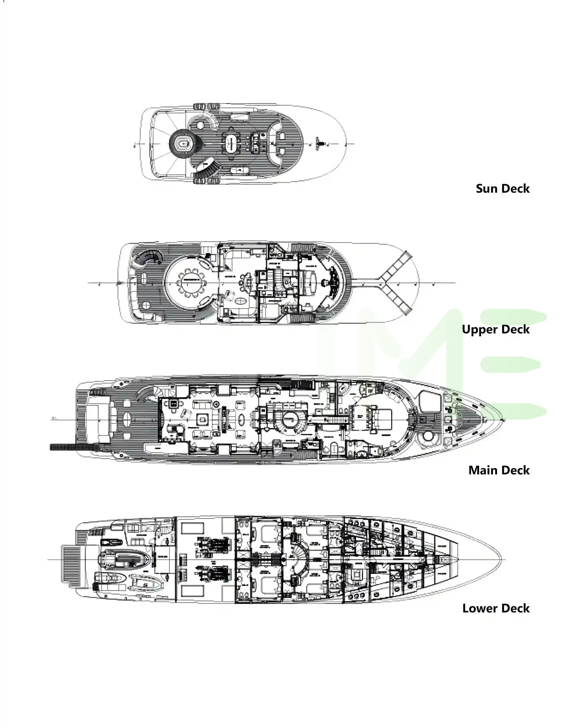 Request plans that include the layout of staterooms, guest areas, and outdoor spaces, as well as crew quarters and work areas.