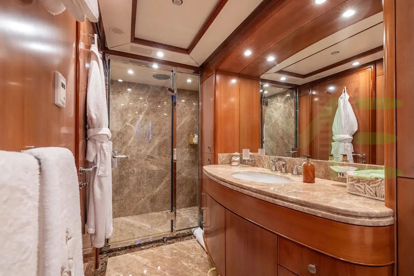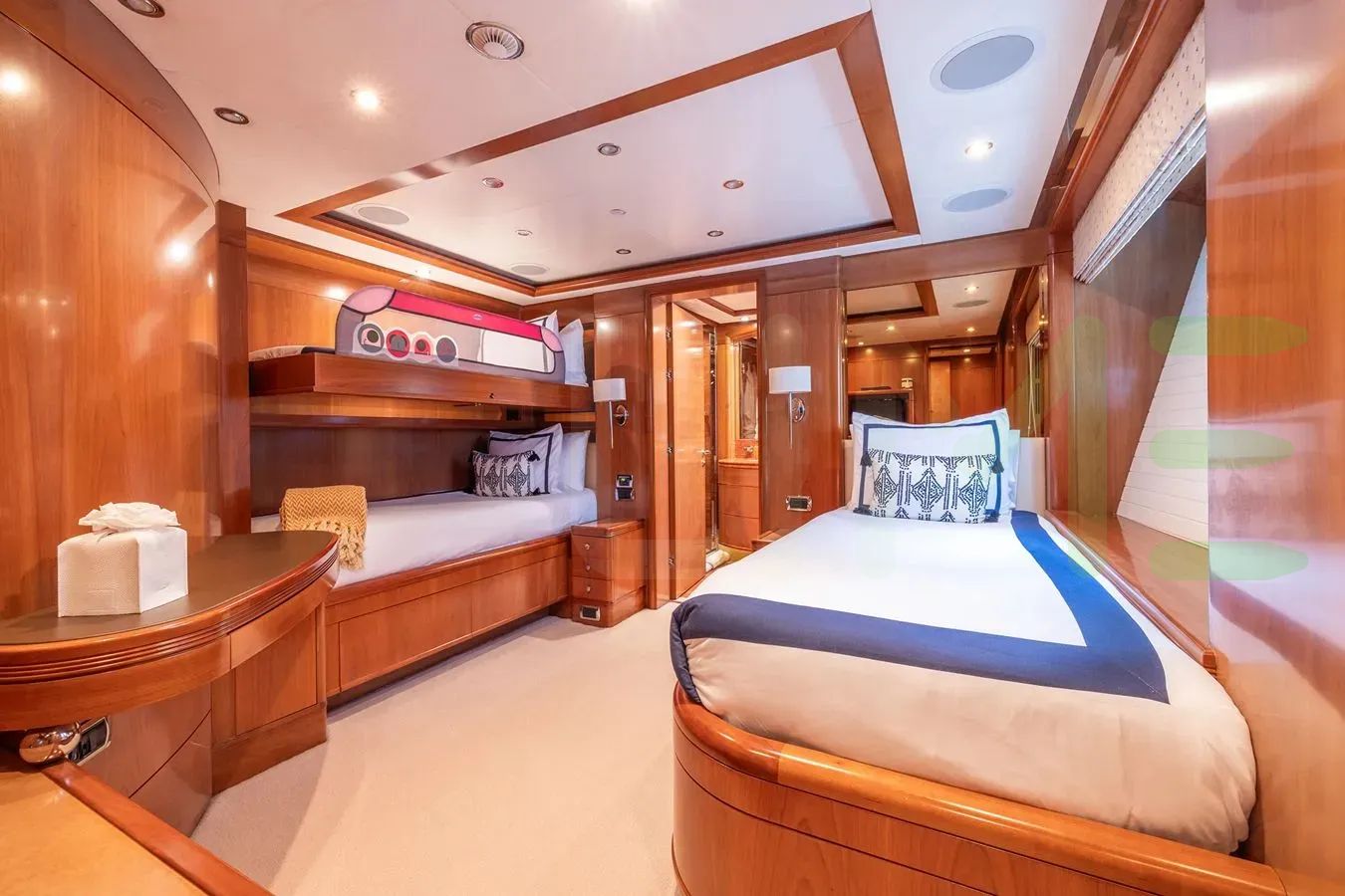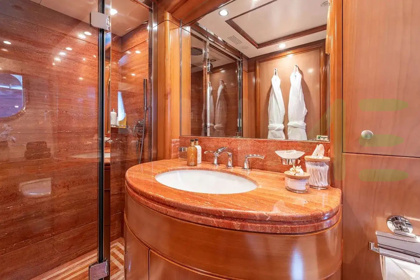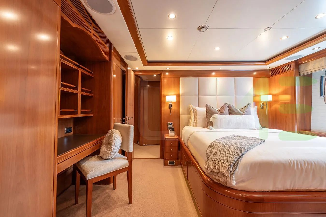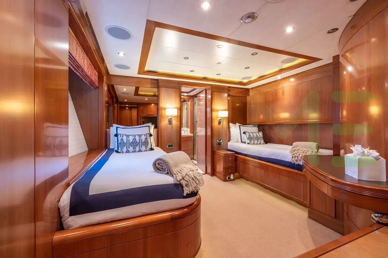 With a gross tonnage of 456, the GUINEVERE yacht for charter provides ample interior space for enjoyment. GUINEVERE offers accommodations for up to 12 guests in 5 lavishly appointed staterooms. She can also carry up to 11 crew onboard, including the Captain, to ensure a relaxed luxury yacht charter experience. The interior design by Zuretti Interior Design exudes a sense of luxury, seamlessly blending comfort with style.