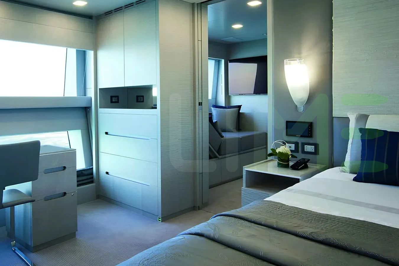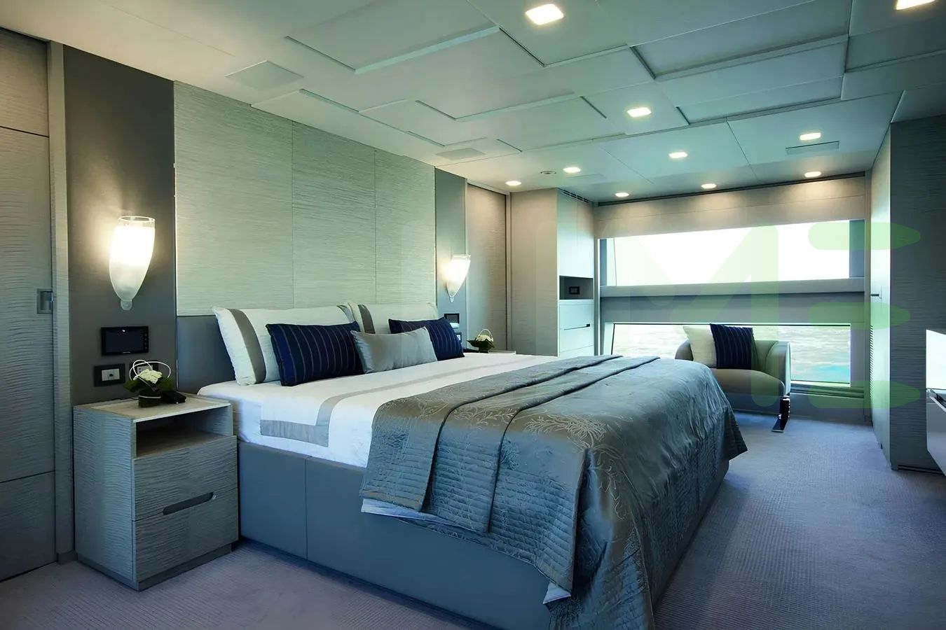 With a gross tonnage of 376, the H yacht for charter provides ample interior space for enjoyment. H offers accommodations for up to 10 guests in 5 lavishly appointed staterooms. She can also carry up to 8 crew onboard, including the Captain, to ensure a relaxed luxury yacht charter experience. The interior design by RWD exudes a sense of luxury, seamlessly blending comfort with style.