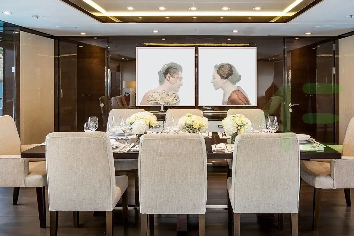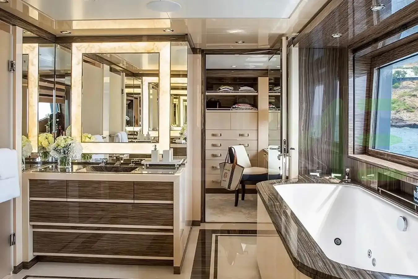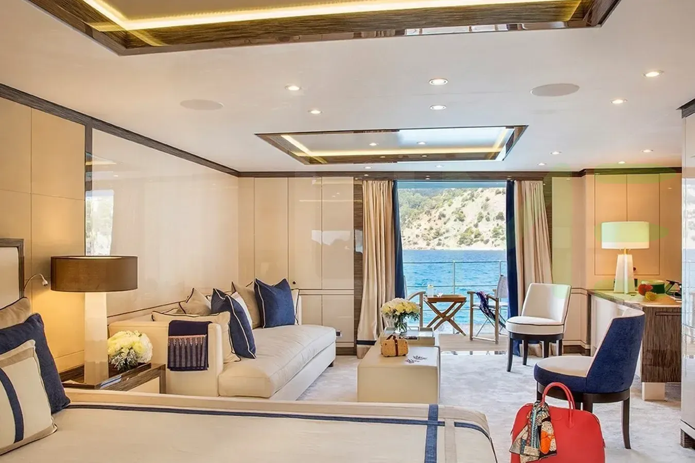 With a gross tonnage of 671, the HALO yacht for charter provides ample interior space for enjoyment. HALO offers accommodations for up to 12 guests in 6 lavishly appointed staterooms. She can also carry up to 13 crew onboard, including the Captain, to ensure a relaxed luxury yacht charter experience. The interior design by Studio Laura Sessa exudes a sense of luxury, seamlessly blending comfort with style.