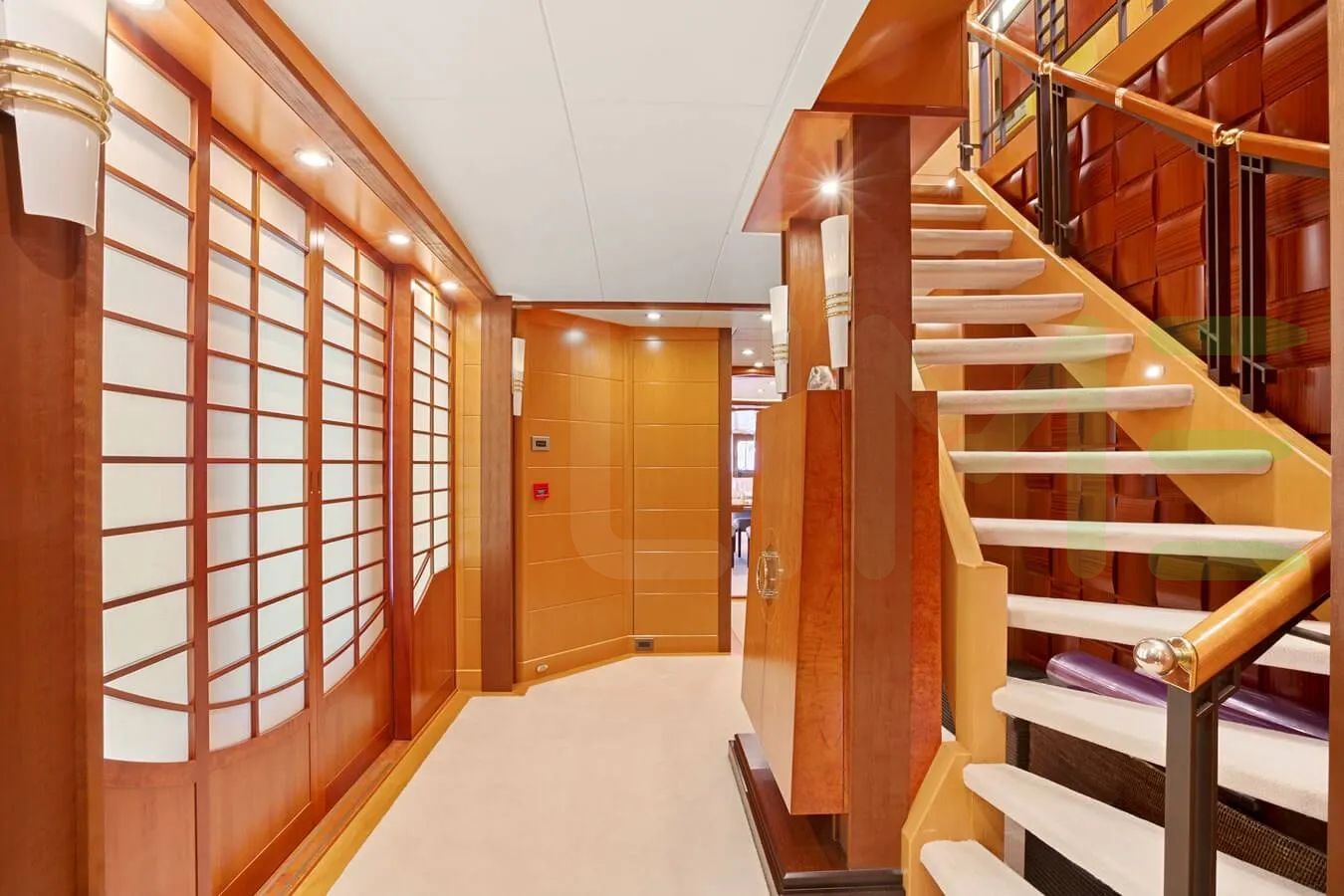 With a gross tonnage of 656, the HERCULES yacht for charter provides ample interior space for enjoyment. HERCULES offers accommodations for up to 10 guests in 5 lavishly appointed staterooms. She can also carry up to 12 crew onboard, including the Captain, to ensure a relaxed luxury yacht charter experience. The interior design by Glade Johnson Design, Inc. exudes a sense of luxury, seamlessly blending comfort with style.