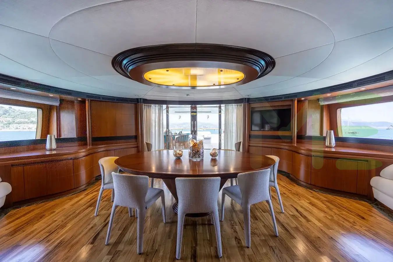 With a gross tonnage of 469, the HOLIDAY yacht for charter provides ample interior space for enjoyment. HOLIDAY offers accommodations for up to 12 guests in 5 lavishly appointed staterooms. She can also carry up to 7 crew onboard, including the Captain, to ensure a relaxed luxury yacht charter experience. The interior design by Roberto Del Re exudes a sense of luxury, seamlessly blending comfort with style.